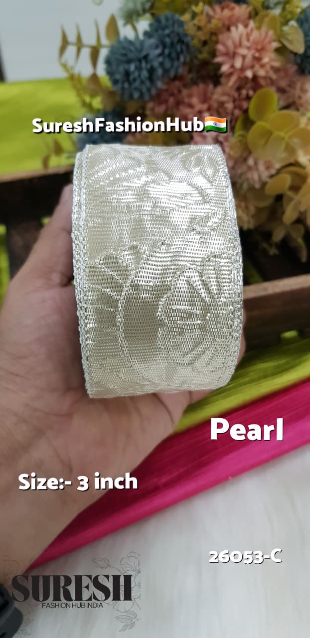 Pearl Fabric Jhalar Lace with Sequin & Dori Work – Design 26017-C