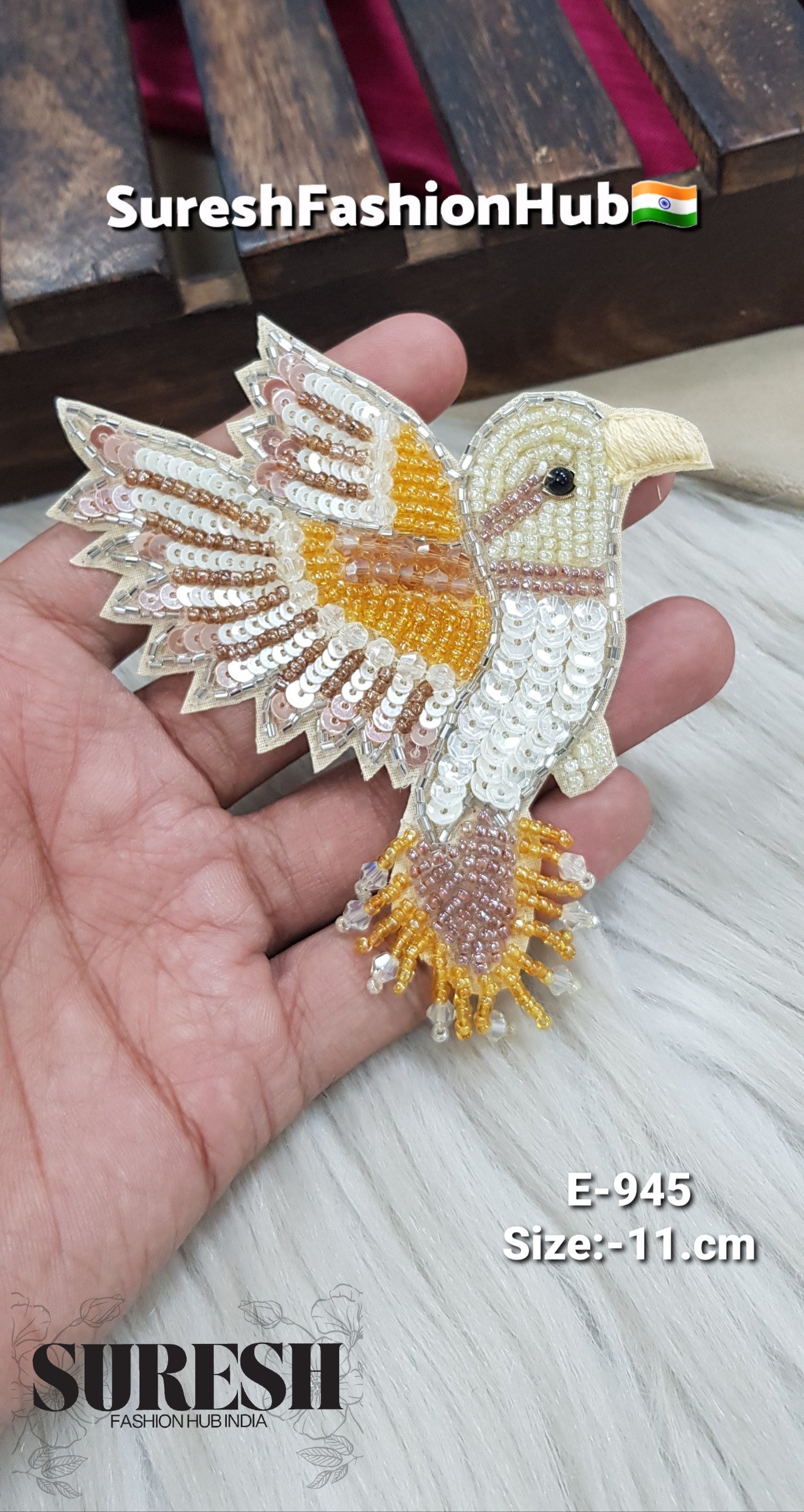 Right Facing Matt Gold Multicolor Bird Patch – E-945