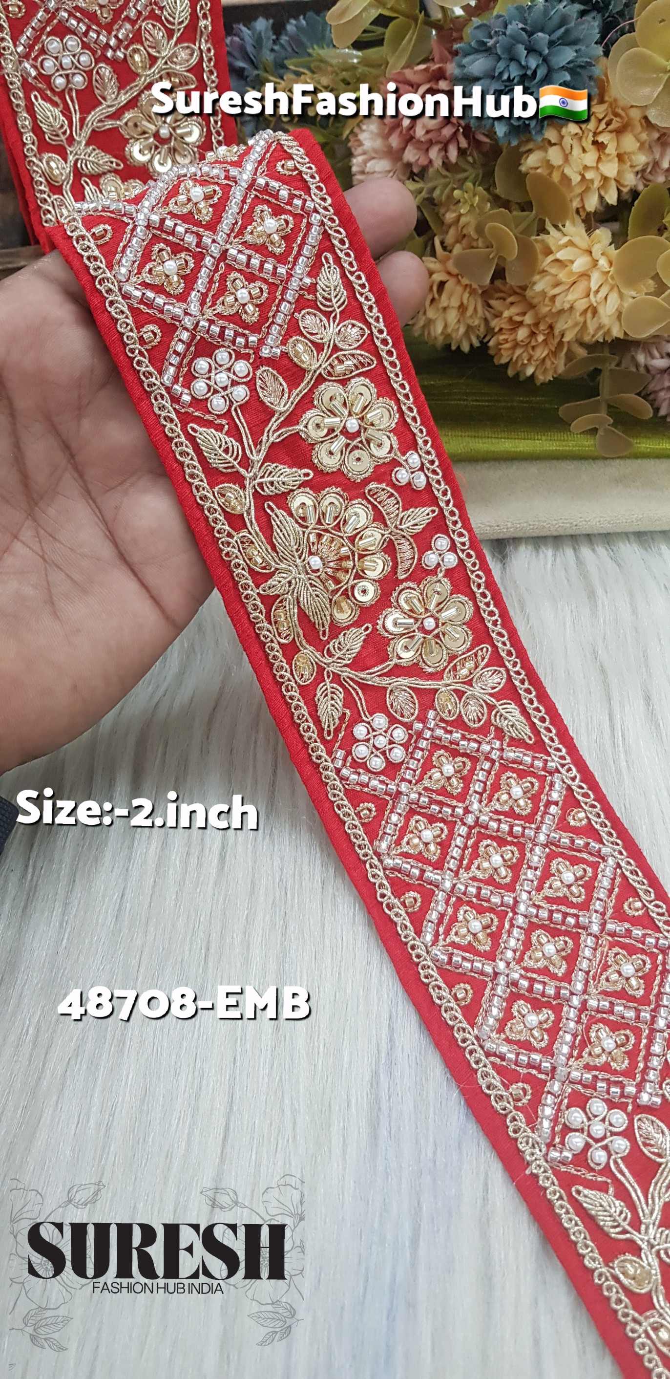 Red Floral Dori Embroidery Lace – 48708-Emb