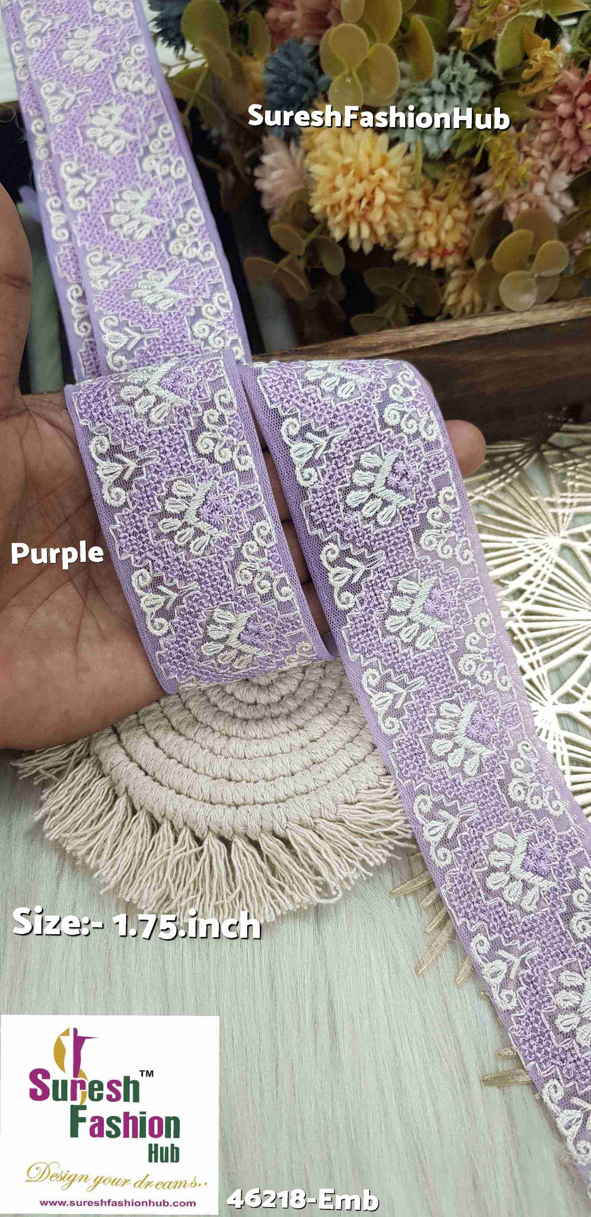 Light Purple Golden Bloom Geometric Embroidery Lace
