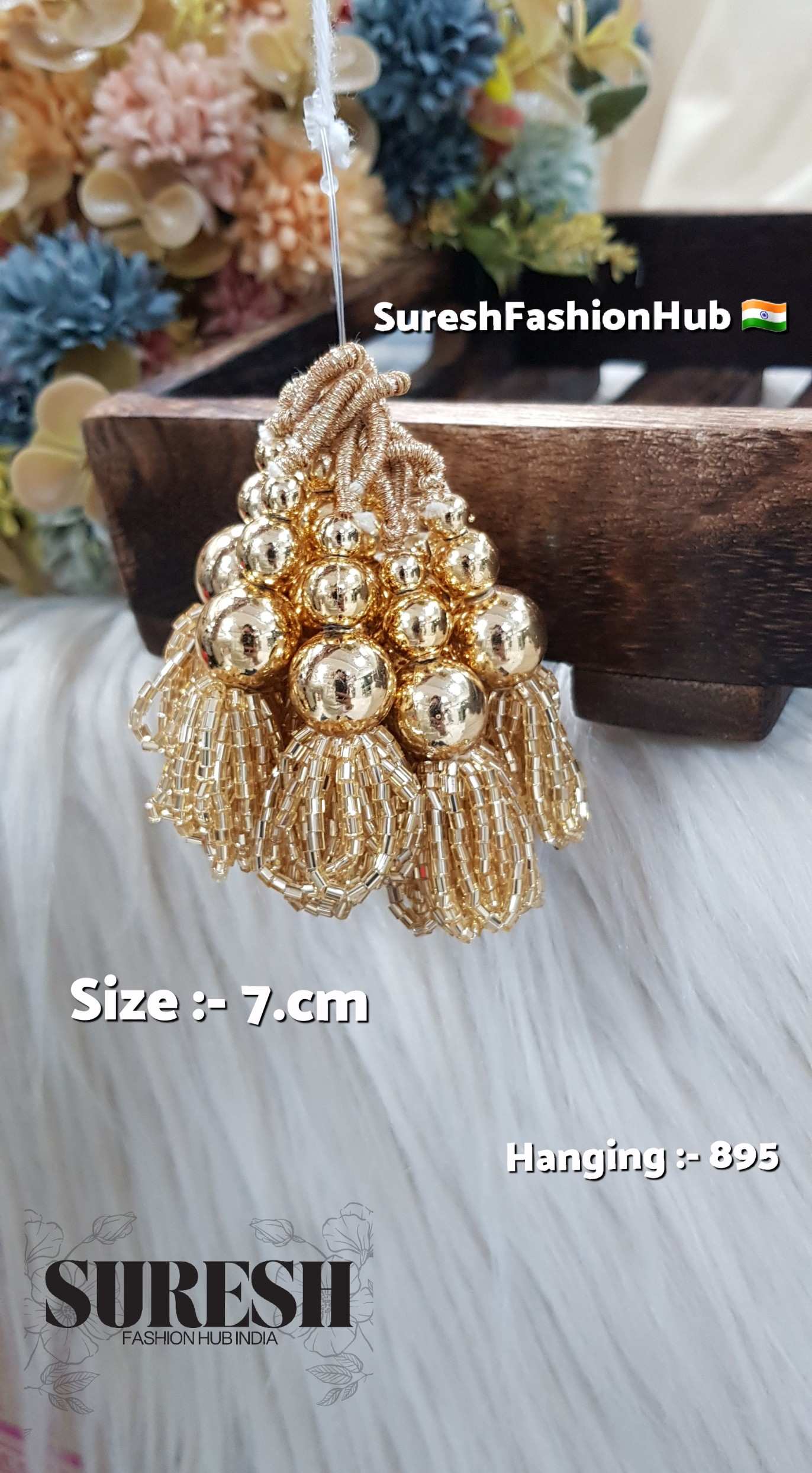 Handmade tassel H-895, designer tassels India, pearl tassels wholesale, ant gold tassels, moti bead tassel, cutdhana tassel, tassel for lehenga, blouse latkan tassel, bridal tassel accessories, tassel embellishments wholesale, Suresh Fashion Hub tassels, laces and trims by SF India.