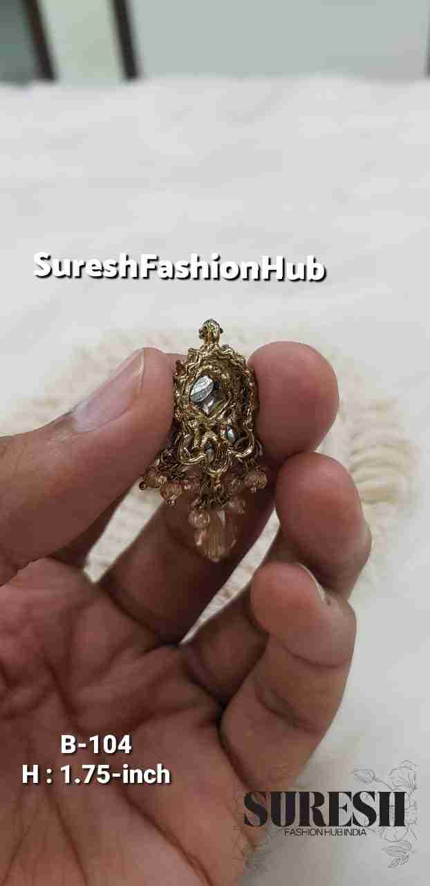 Presenting our *Antique Kundan Hanging Designer Button*, a statement accessory crafted to bring royal elegance to ethnic and wedding wear. Designed in premium antique-finish metal, this handcrafted button reflects rich traditional artistry with a bold vertical presence.