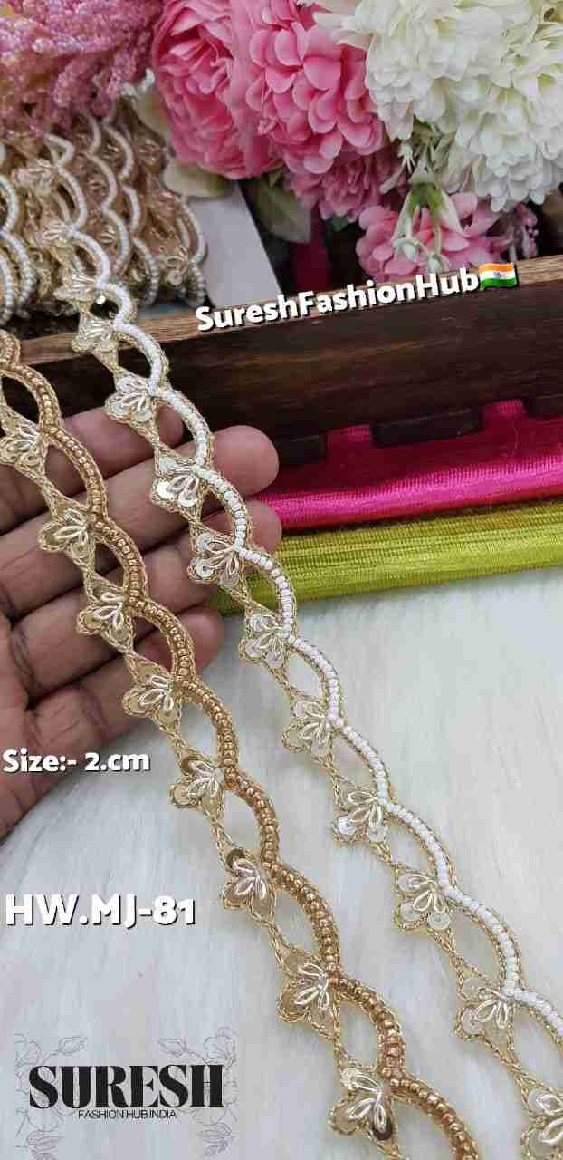 Crafted using *saadi, pearls (moti), and sequins, this lace stands out for its rich pearl work, giving it a luxurious yet elegant appeal. The **Pearl variant features classic white moti, offering a soft and modern finish, while the **Antique variant uses matt moti*, creating a deeper, traditional, and slightly vintage look.