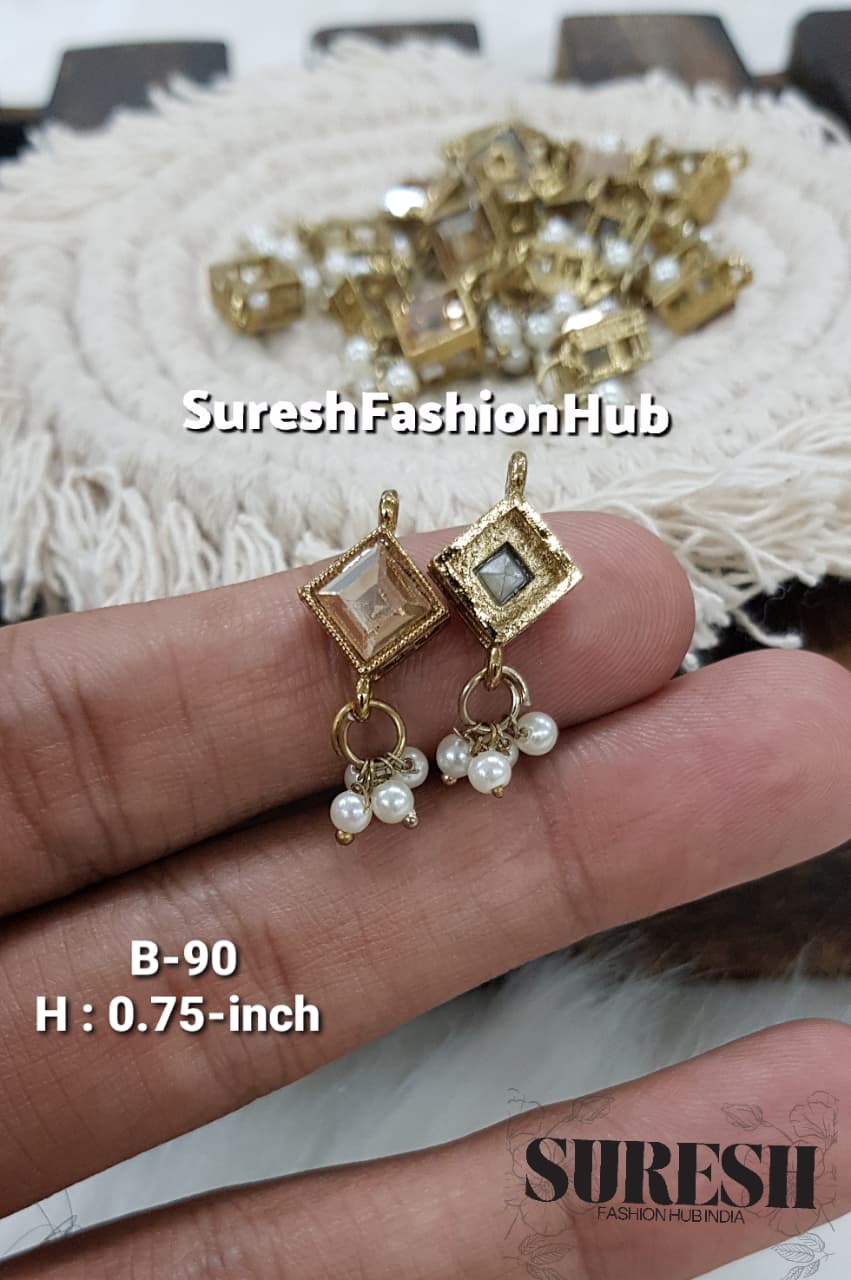 The surface is embellished with *shadow kundan and decorative stones, giving it a deep, dimensional look. To enhance its aesthetic charm, delicate **hanging pearls (moti)* are attached, adding graceful movement and a royal finishing touch.
