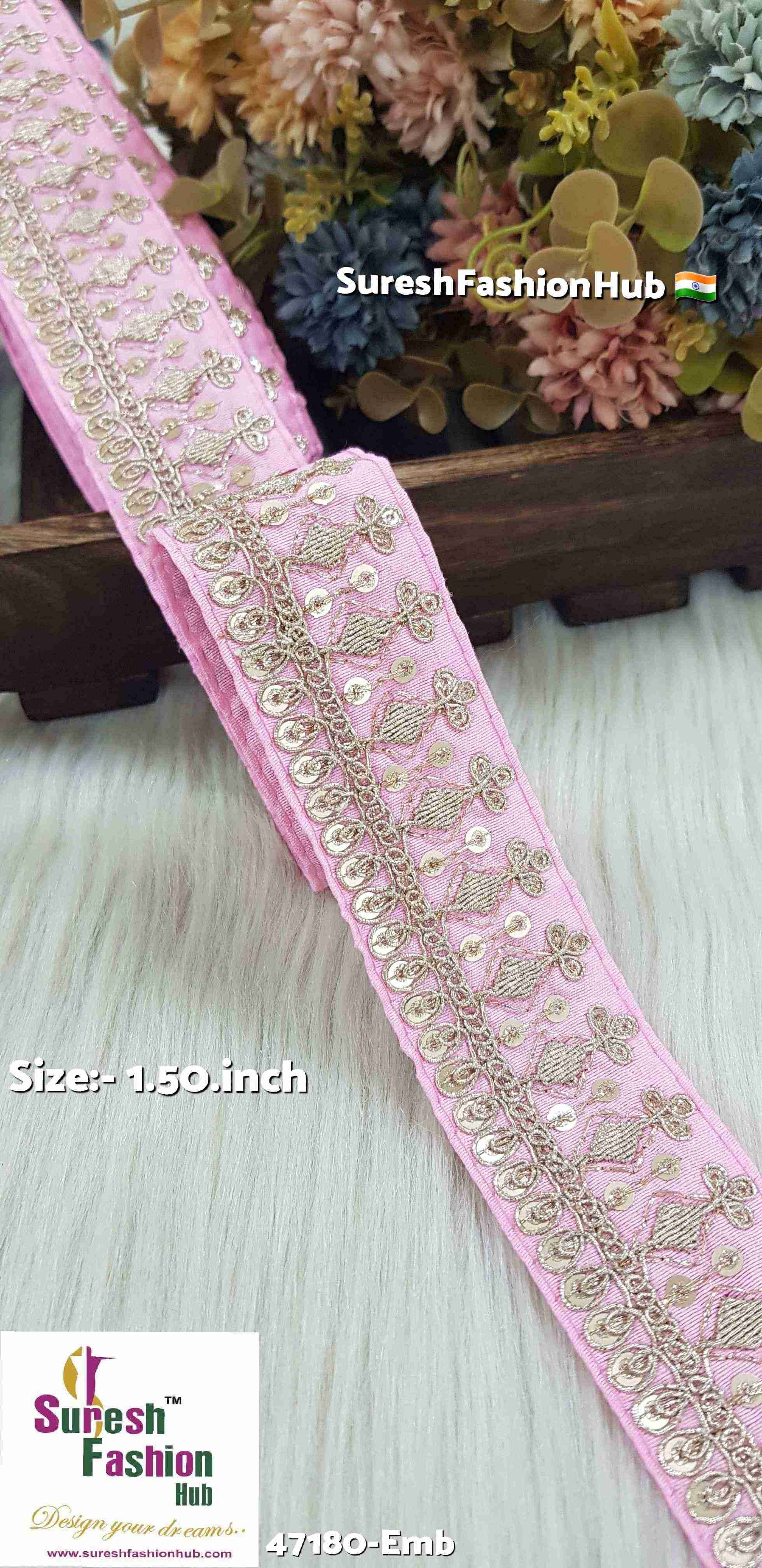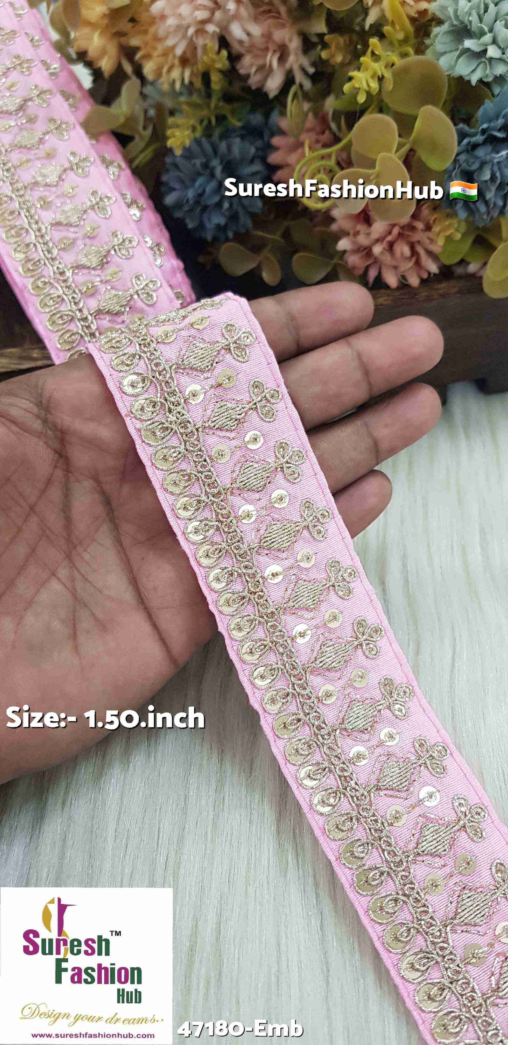 Elevate your designs with the Royal Elegance Embroidered Lace, an exquisite 1.5-inch lace that embodies the essence of luxury and style. Crafted with precision, this lace features a unique combination of two intricate lace patterns, beautifully embroidered on high-quality fabric with dori sequence work.