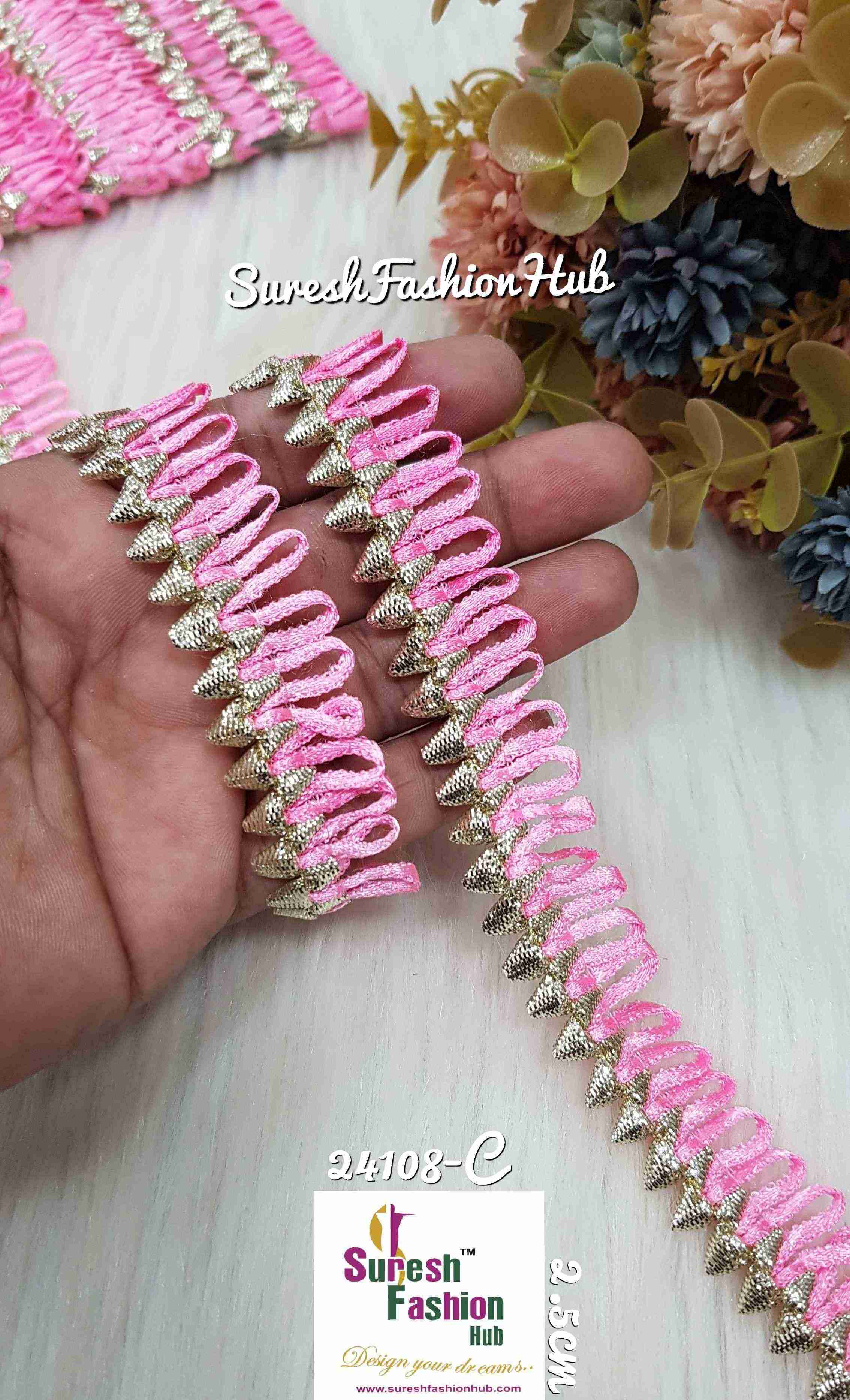 Baby Pink Satin Bliss Triangle Gota Borders " – a fusion of timeless gota patterns and modern satin elegance. Meticulously crafted for Sophistication, these laces Effortlessly Enhance Borders, Sleeves, and Accents.These Mrims can be Made from a Variety of Materials, Including Fabric, Ribbon, lace, or metal, and can Feature Different Designs or Patterns, such as Intricate Filigree,or More Elaborate Designs.Happy Shopping