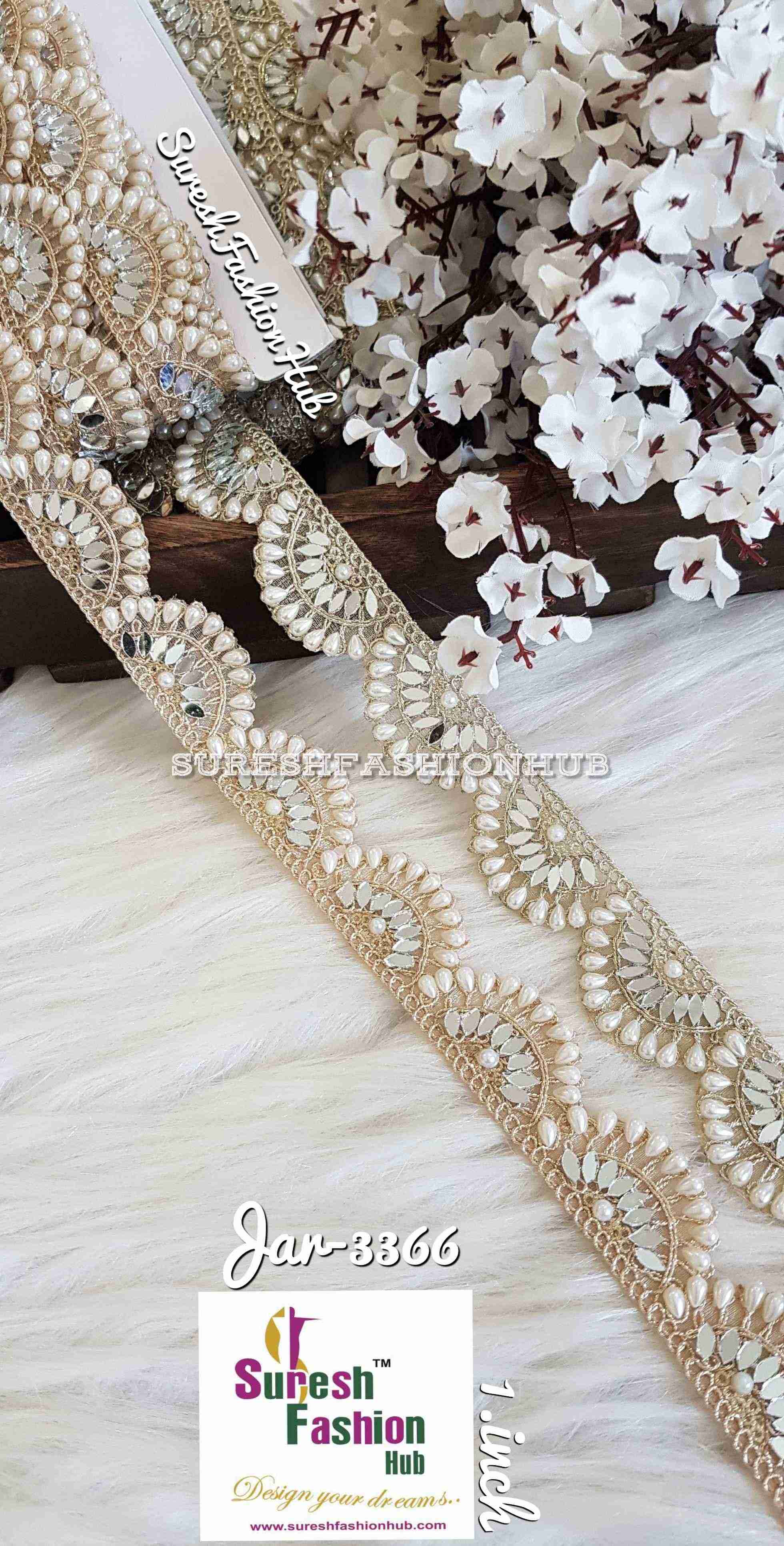 Suresh Fashion Hub Offers A Huge Range of Our Finest Pearl& Stone Embellished Trim. A Pearl and Stone Embellished Trim is a Decorative Border That Is Adorned With Pearls and Stones They are Usually Attached To The Trim Using Thread, Glue, or Metal Settings. We Provide Qualitative and Elite Products. Happy Shopping!