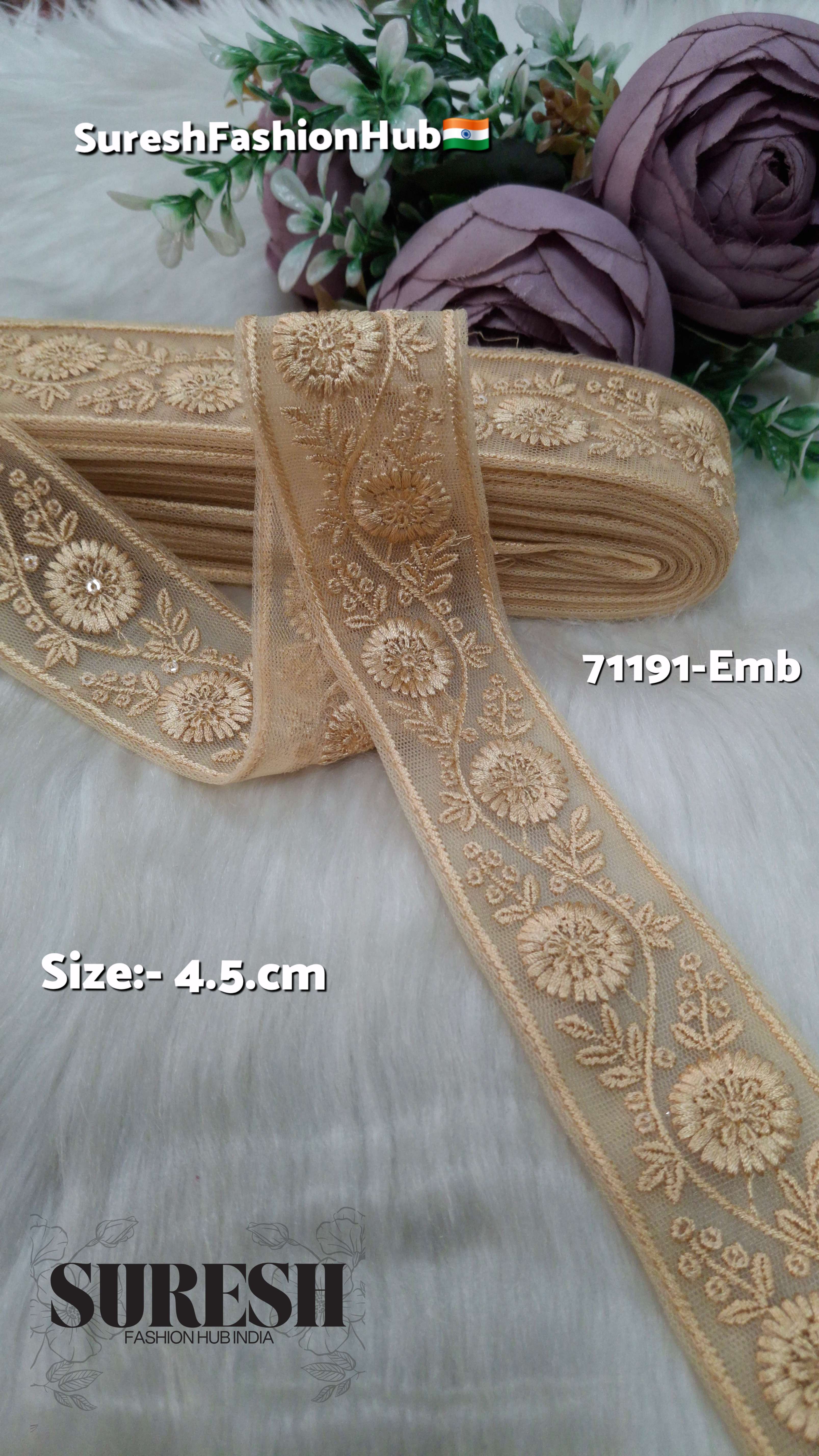 Design 71191-Emb is a beautiful tone-on-tone floral embroidery lace, crafted on premium colored net fabric to deliver a soft, elegant, and luxurious finish. This lace is created using matching color threads on the same color net base, forming a seamless and refined look that enhances the beauty of any garment or décor piece.