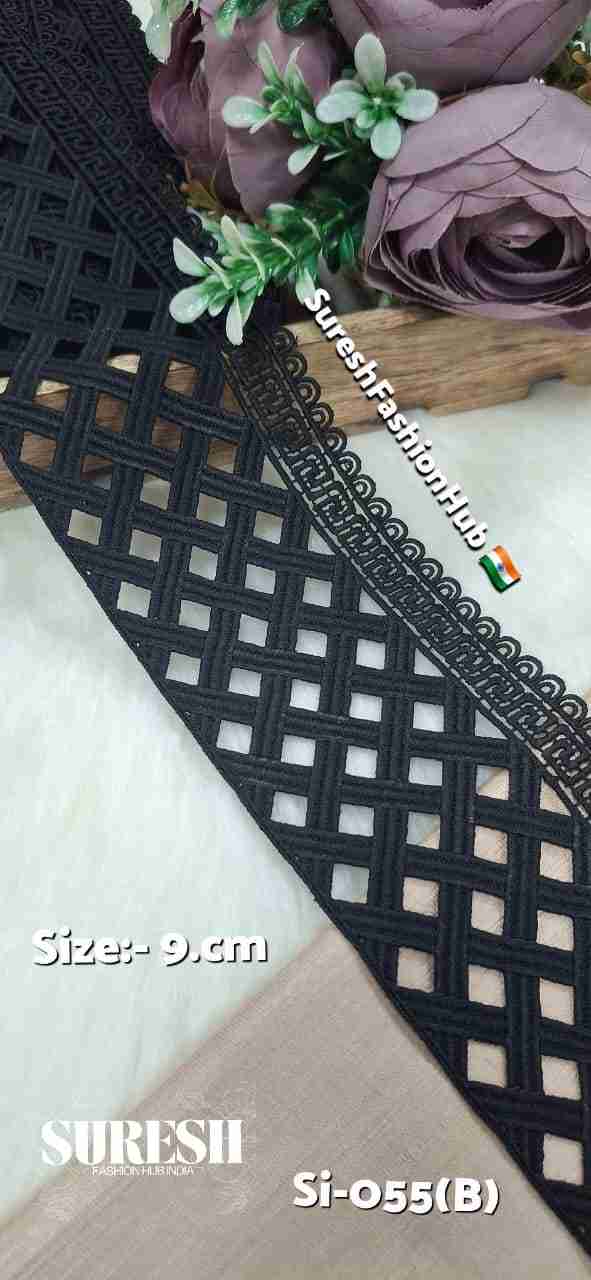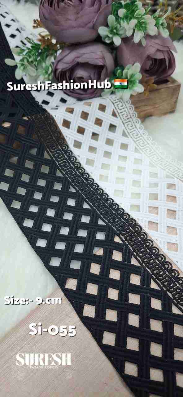 Offered by *Suresh Fashion Hub India, design **SI-055* is a premium imported GPO lace sourced from China, known for its extra-ordinary quality and clean finishing. This *one side floral GPO lace* features a bold and elegant floral pattern, making it suitable for both *traditional and modern wear*.