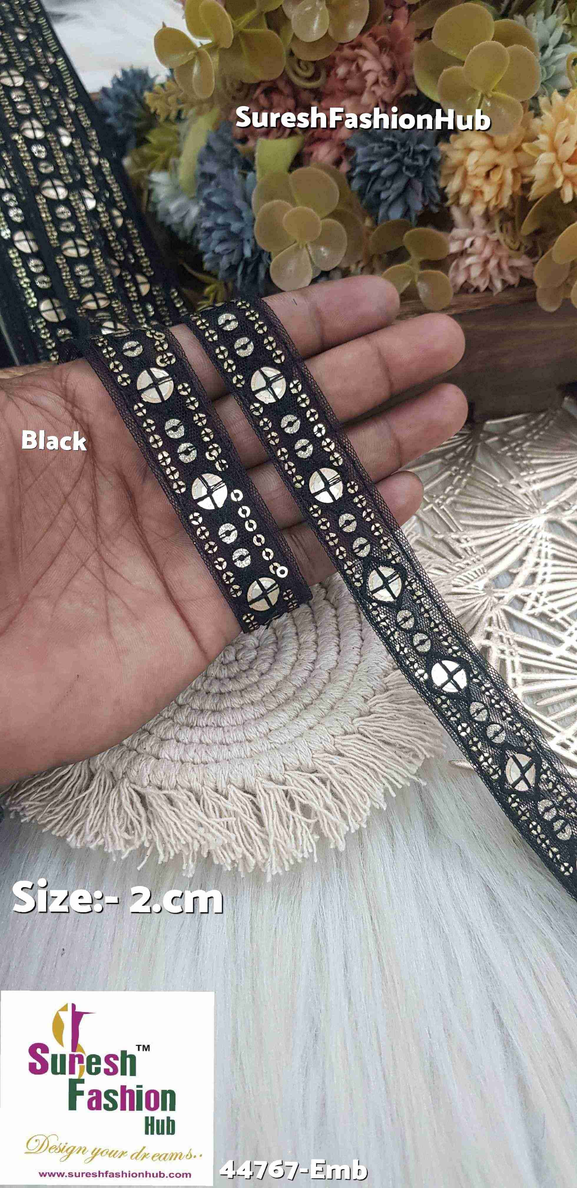 Discover elegance with our exquisite collection of net embroidered laces, delicately crafted to elevate your designs. Each lace, measuring 2 cm, features captivating embroidery highlighted by off-white thread accents. Available in enchanting shades like Bottle Green, Beige, Navy Blue, Black, Rani, Red, Pista, Baby Pink, SeaGreen, Yellow, Grey, and Gajri, these laces add a touch of sophistication to any project. Price: Rs 250 per piece.