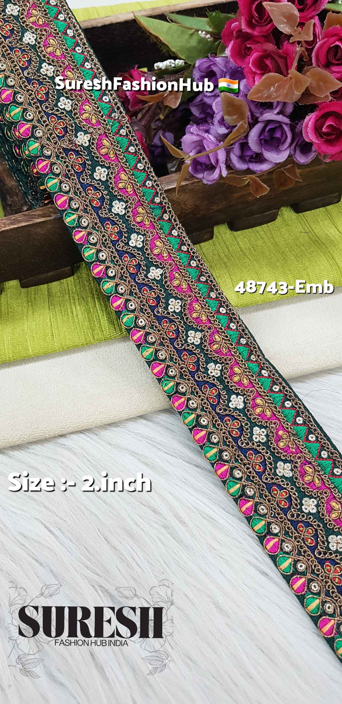Presenting our *48743-Emb Sabyasachi Inspired Premium Embroidery Lace, a stunning 2-inch designer border crafted to elevate any ethnic or couture garment. Priced at **Rs 1300 for 9 meters, this lace has been developed in **nine rich fabric colors*, giving customers a wide choice to match their outfits perfectly.