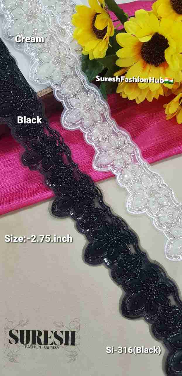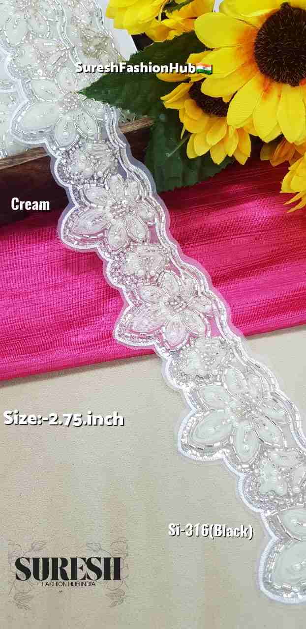 Imported organza lace, kaddhana pearl lace, SI-316 lace, premium machine lace India, two side designer lace, pearl bead organza lace, luxury lace border.
