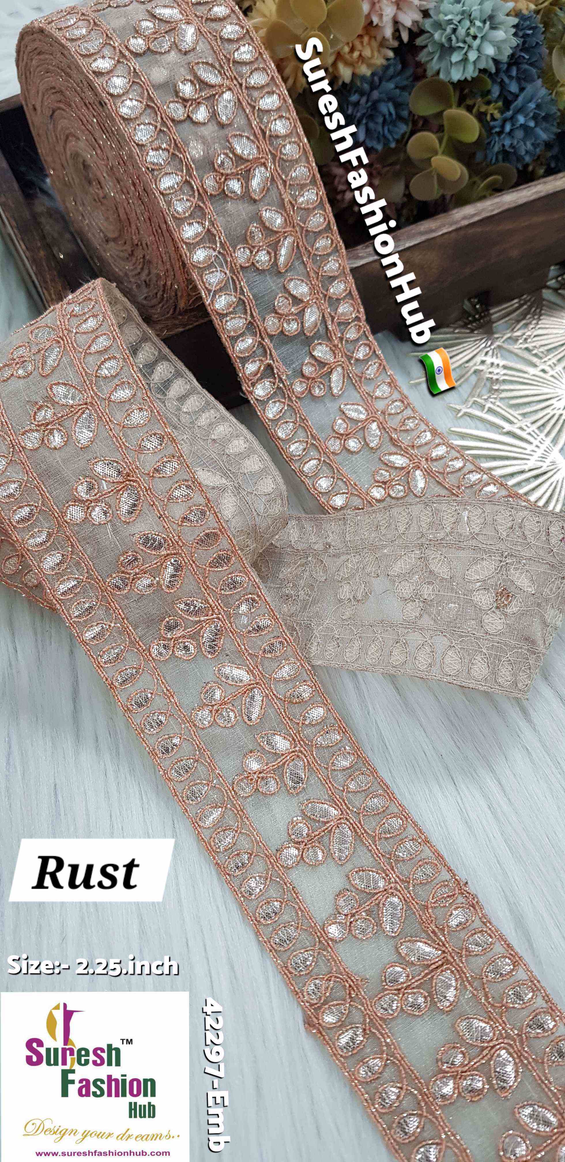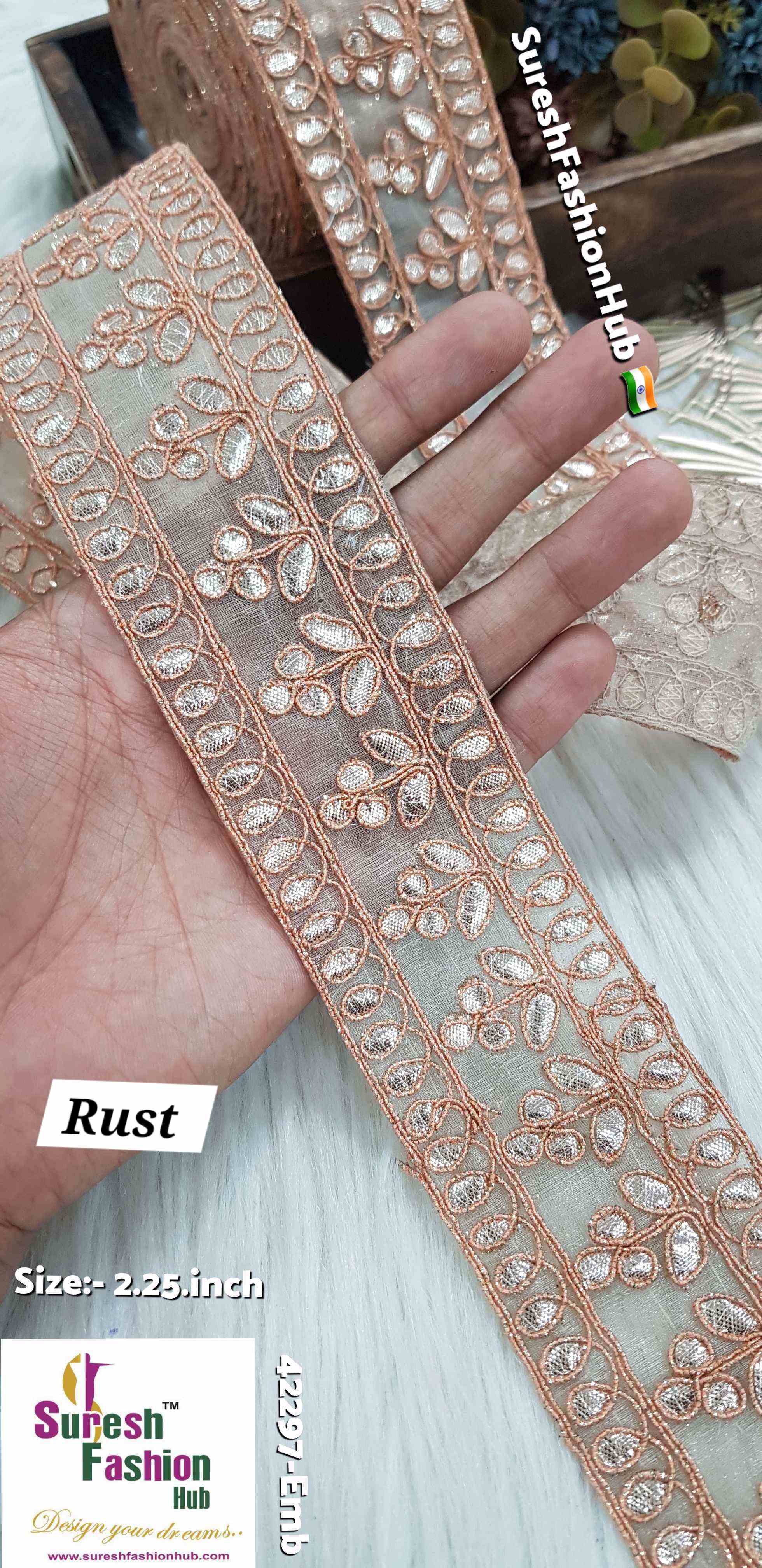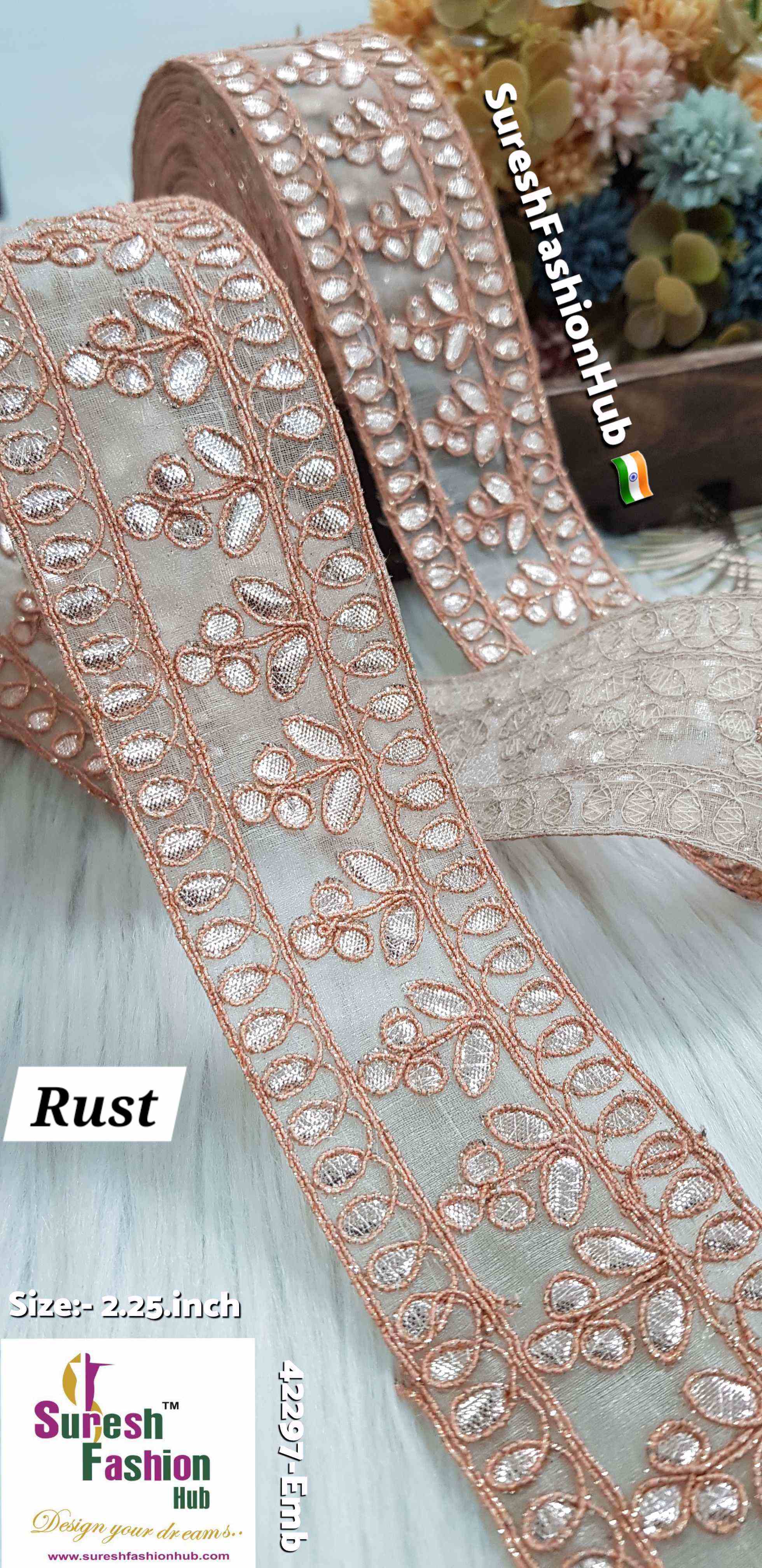 Indulge in the exquisite charm of our Cute Petal Laser Gota Lace, priced at Rs 750 for 9 meters. This intricate lace is crafted with precision using a Gota Laser Cut Machine, where delicate gota is meticulously affixed onto organza fabric. Adorned with colorful jari cord, this 2-inch design features a delightful floral pattern that exudes elegance and sophistication. Elevate your creations with the extraordinary beauty of our Cute Petal Laser Gota Lace.
