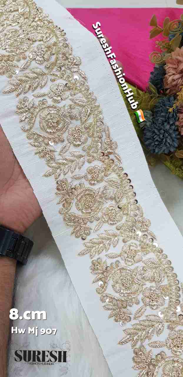 Handmade saadi border, couture floral embroidery lace, bridal handmade border India, zari cutdhana lace, luxury saree border, dyeable embroidery trim, premium handmade ethnic lace