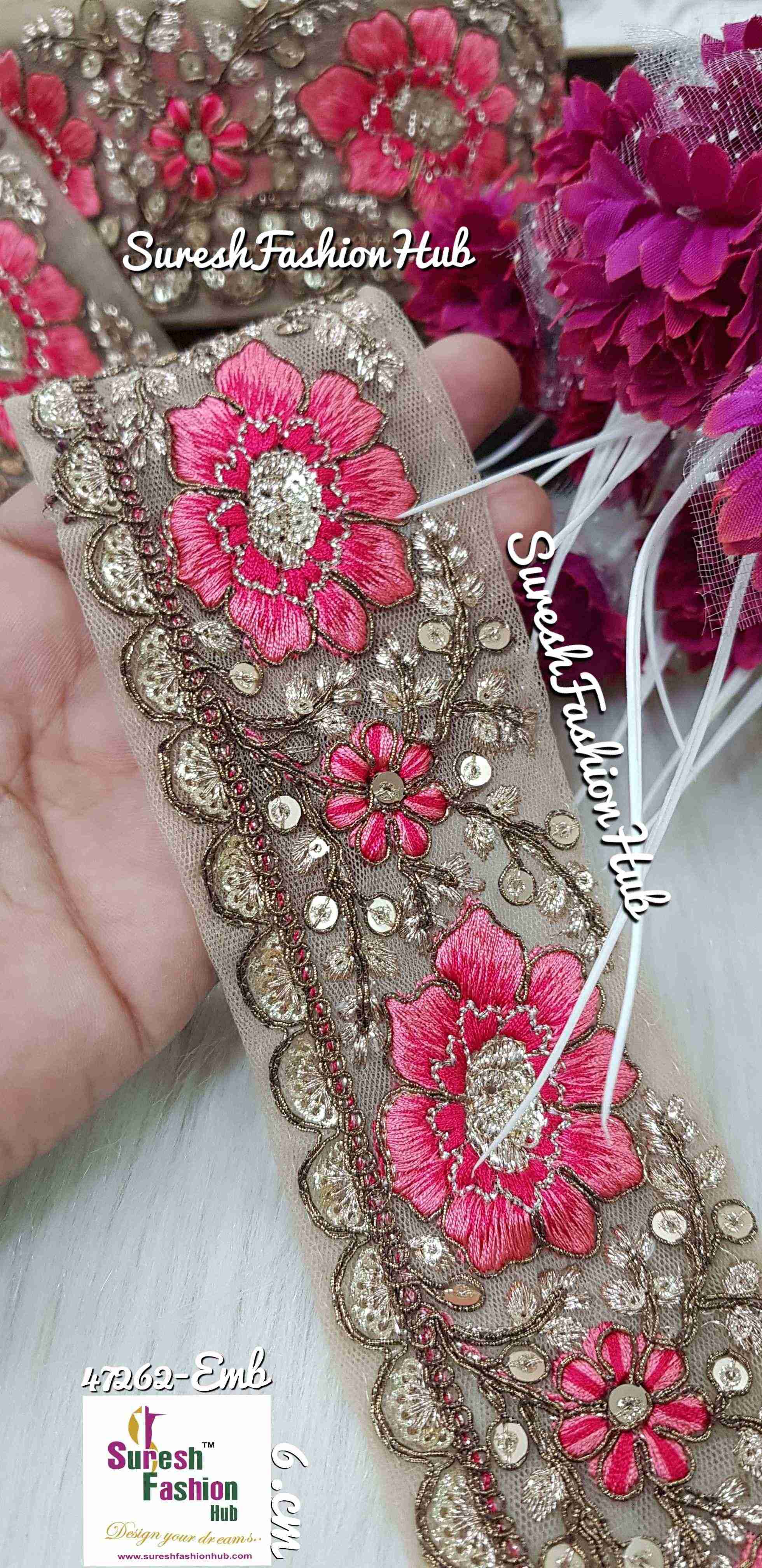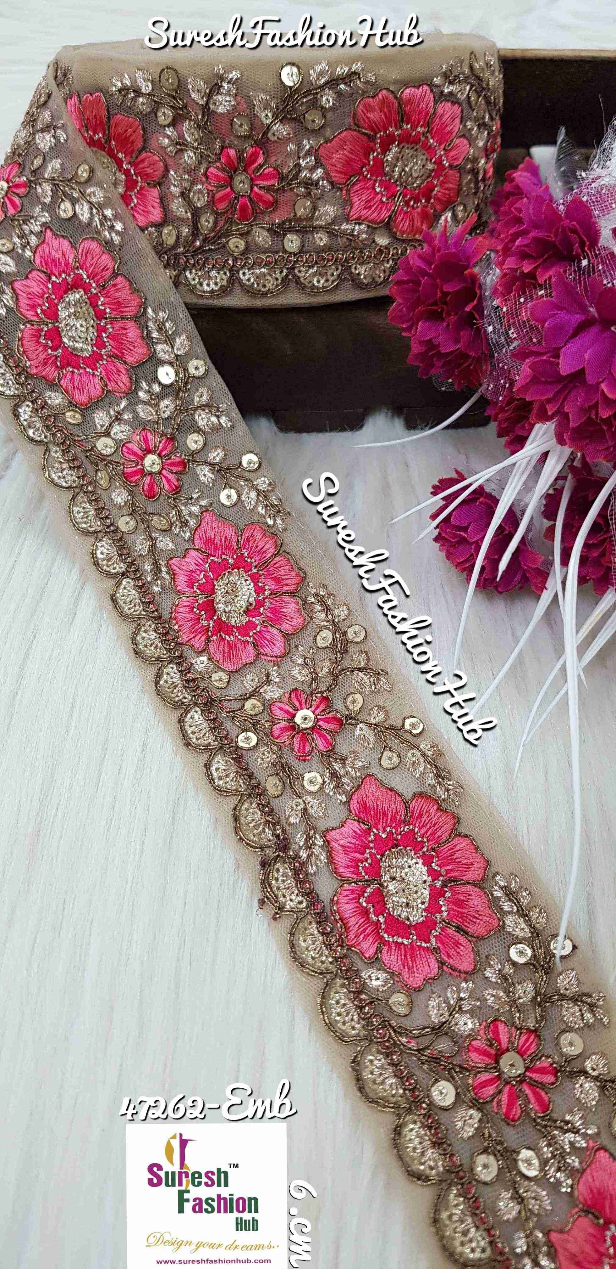 The Antique Scalloped Floral Lace - 47262-Emb from Suresh Fashion Hub India is designed to elevate your designs with its intricate details and luxurious finish, making it an ideal choice for adding a sophisticated and elegant touch to any project.