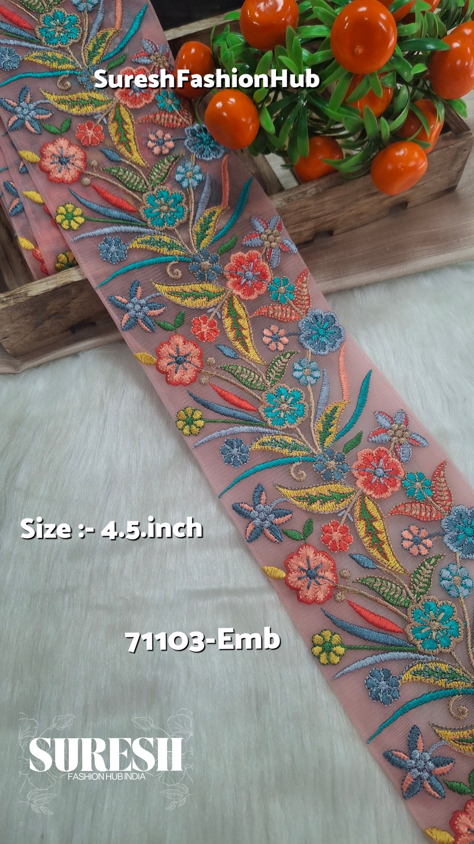 Introducing our *Exquisite Multi-Color Embroidery Net Border*, a premium 4.5-inch design crafted to perfection for designer and boutique wear.