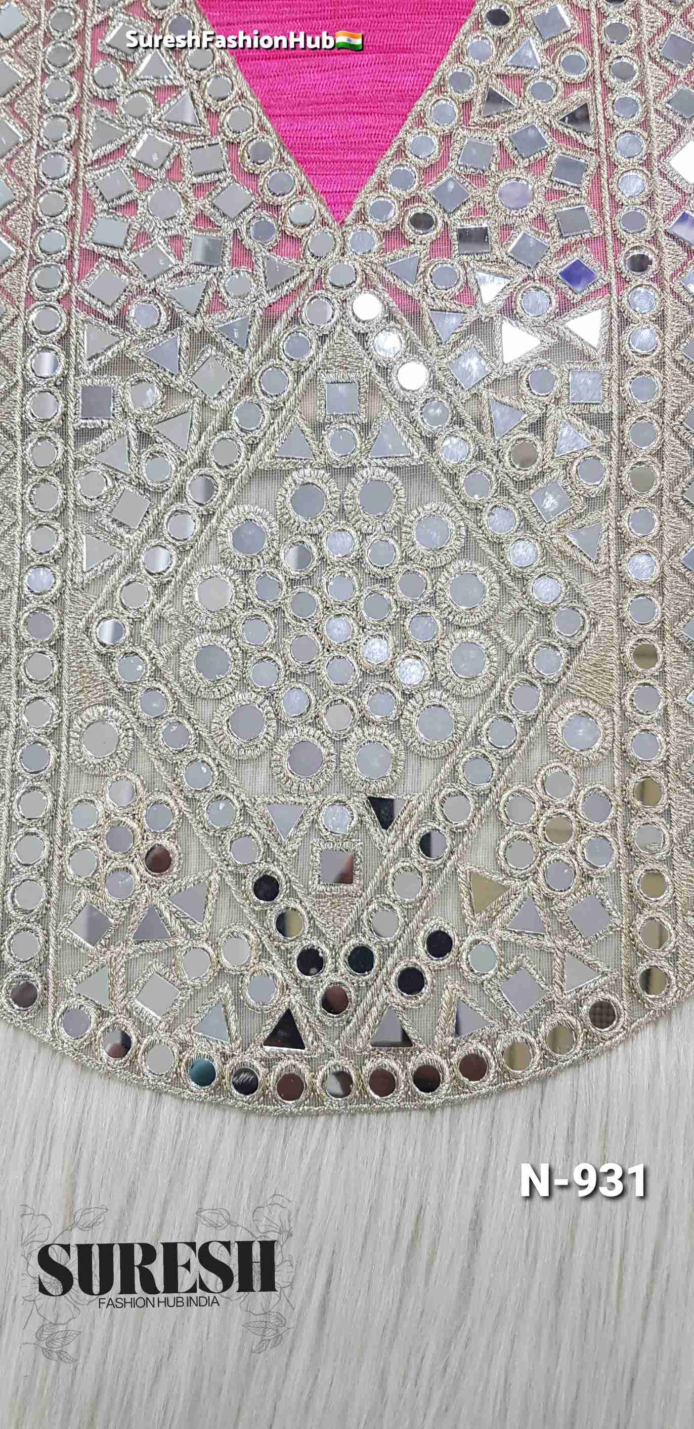 Introducing our *N-931 Geometric Floral Mirror Embroidered Neck, a premium **machine-made embroidery neck design, priced at **Rs 350 per piece*.