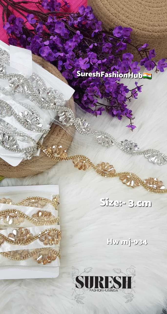 The *rhinestones provide intense shine, while the **rhinestone chains enhance movement and detailing*, giving the lace a rich and eye-catching finish.
