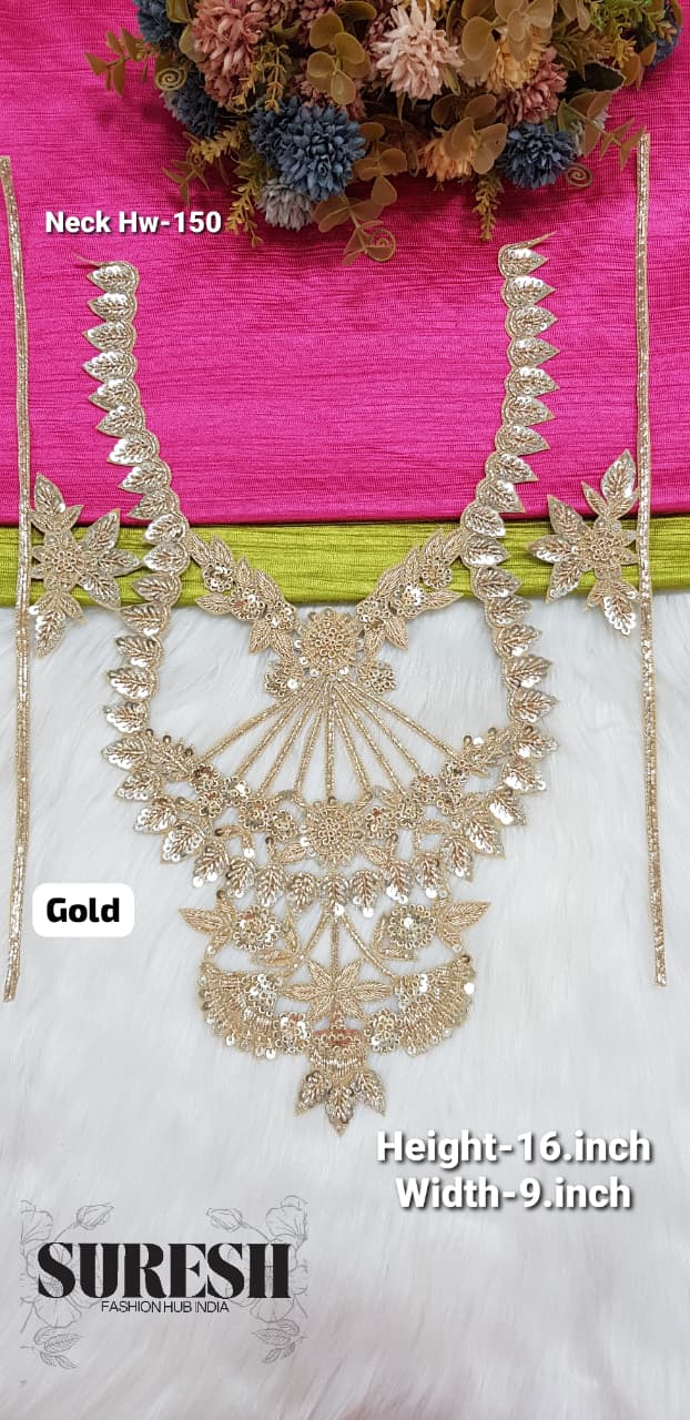 HW-150 is a *fully handmade floral Zardorsi neck design, beautifully crafted with traditional workmanship by **Suresh Fashion Hub India*.