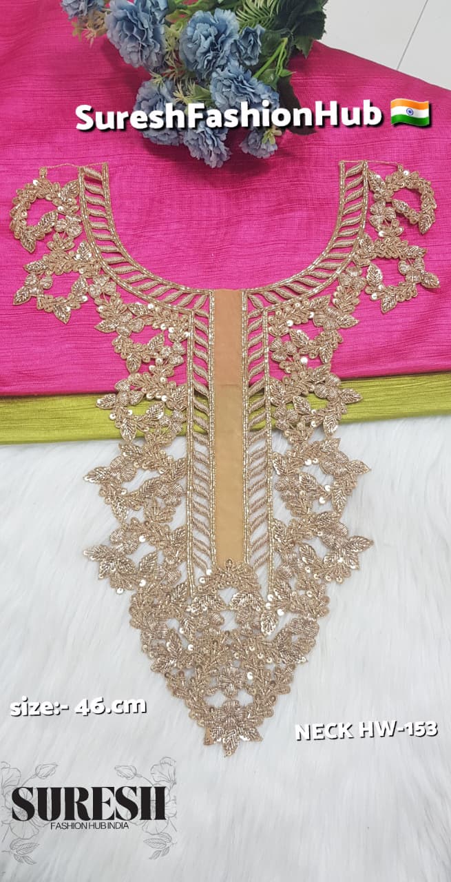 HW-153 is a *grand, fully handmade floral Zardorsi neck design, exclusively crafted with fine traditional workmanship by **Suresh Fashion Hub India*.