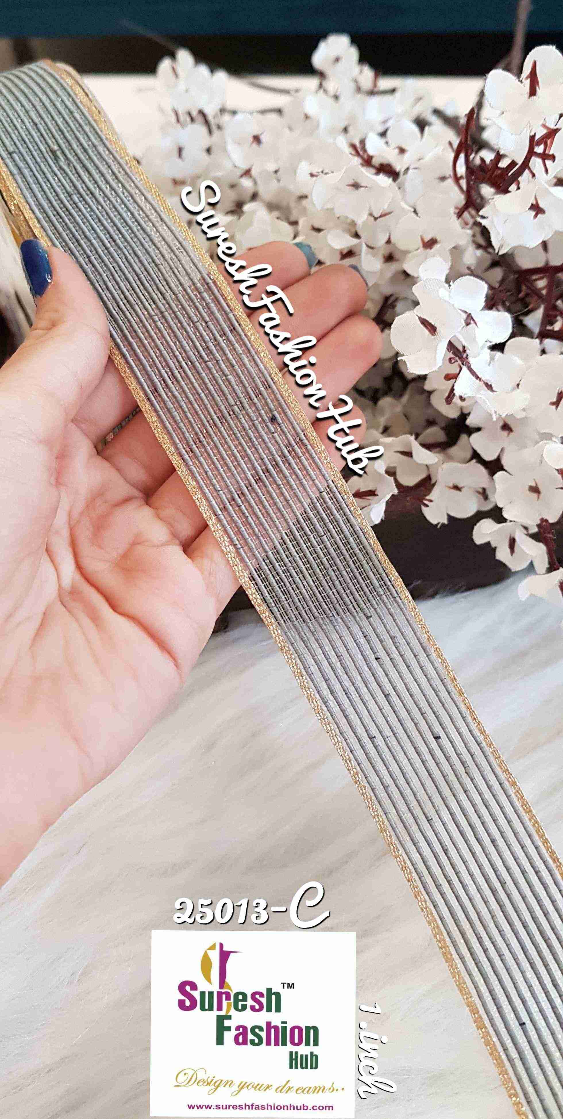 Suresh Fashion Hub Presents an Extensive Range Of Finely Crafted Affordable Trims Designed with Extreme Precision & Intricacy. These trims can be made from a variety of materials, including fabric, ribbon, lace, or metal, and can feature different designs or patterns, such as intricate filigree,or more elaborate Designs.Happy Shopping