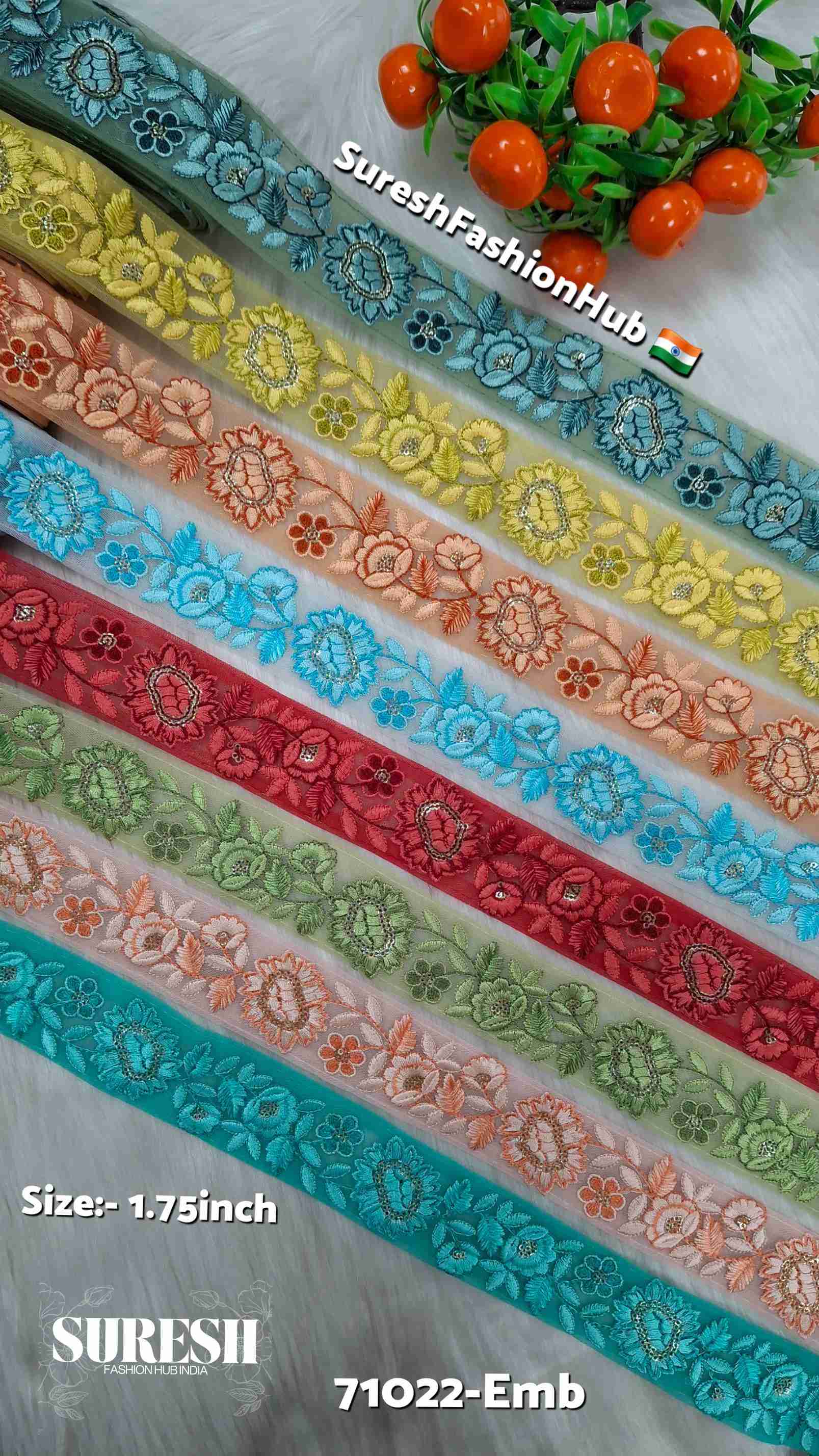 Presenting our *71022-Emb Premium Floral Embroidery Lace, a **1.75 inch machine-embroidered designer border, priced at **Rs 540 for 9 meters*.