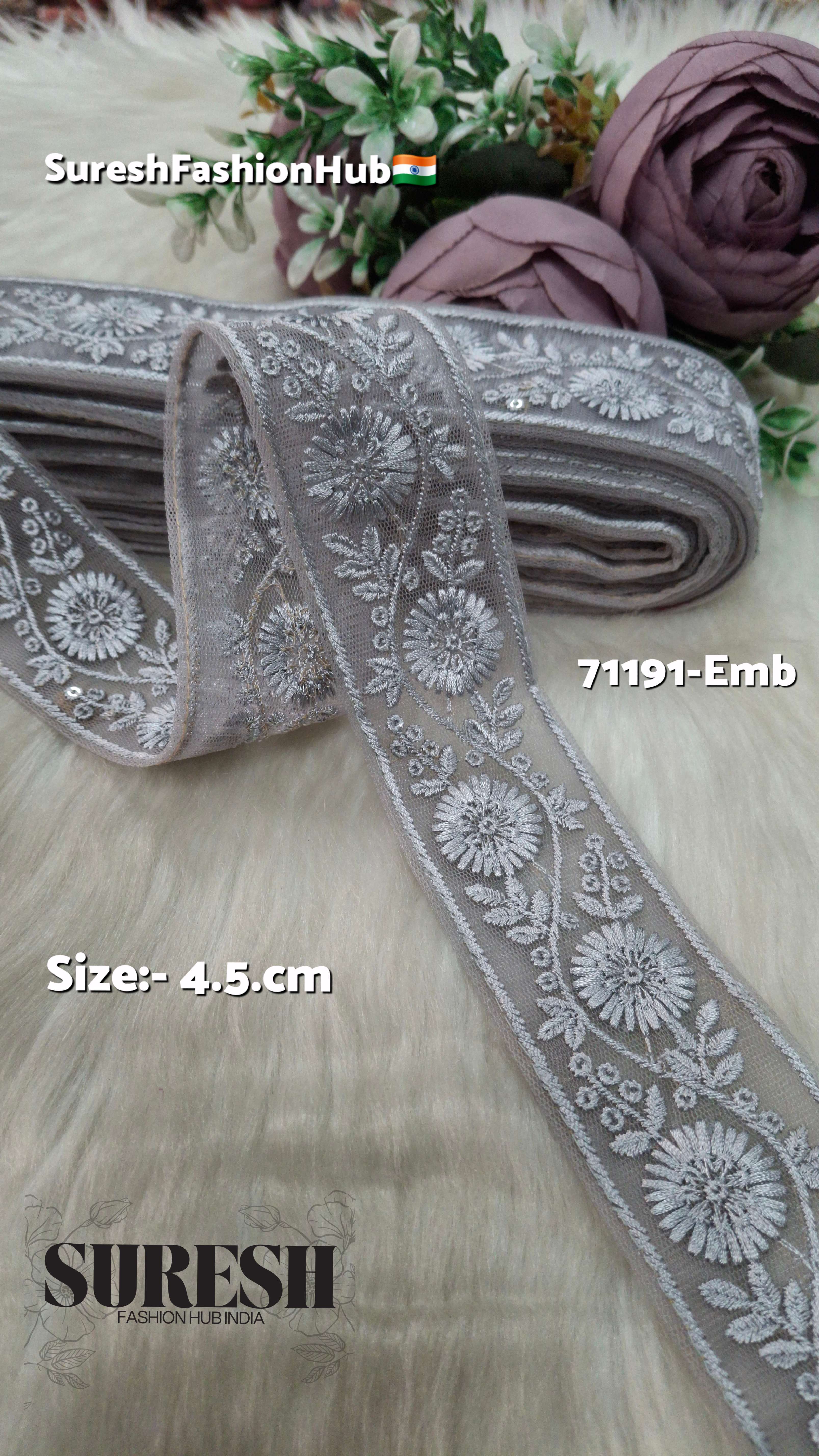 Design 71191-Emb is a beautiful tone-on-tone floral embroidery lace, crafted on premium colored net fabric to deliver a soft, elegant, and luxurious finish. This lace is created using matching color threads on the same color net base, forming a seamless and refined look that enhances the beauty of any garment or décor piece.