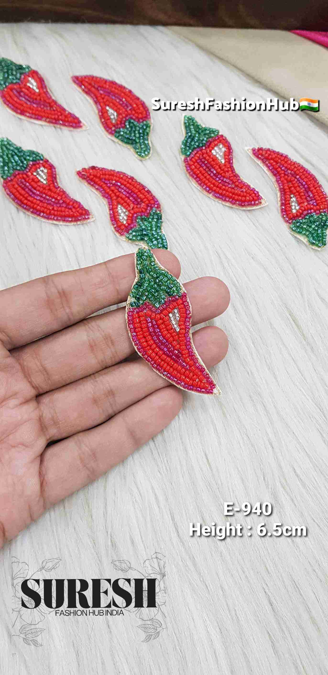 Presenting our *E-940 Handmade Red Chilli Patch, a **fun, vibrant, and eye-catching handcrafted motif* designed to add a bold and quirky touch to any outfit or accessory.