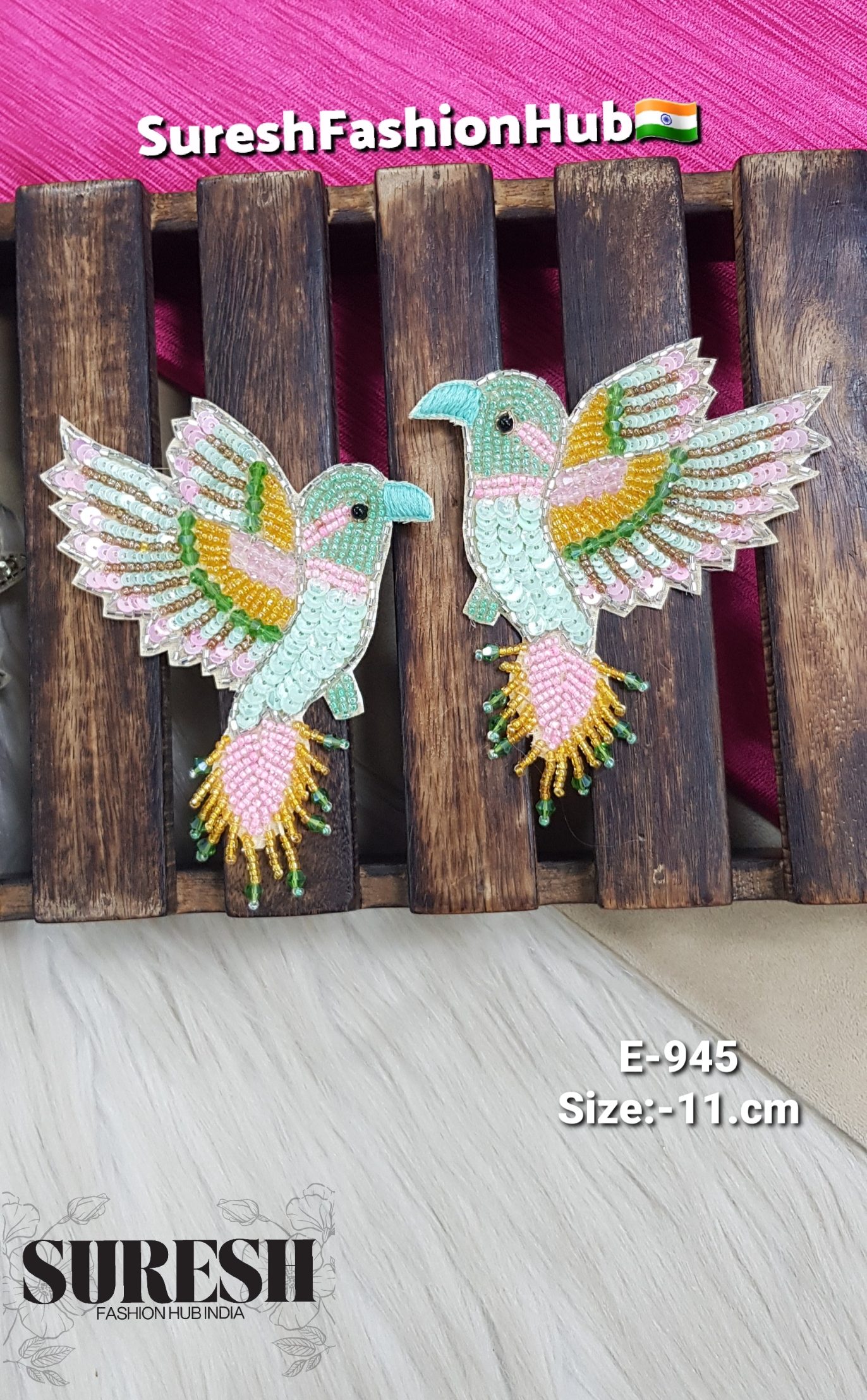 Introducing our *E-945 Multicolor Bird Patch, a **lovely and eye-catching bird design* that is *completely handcrafted with intricate handwork*.