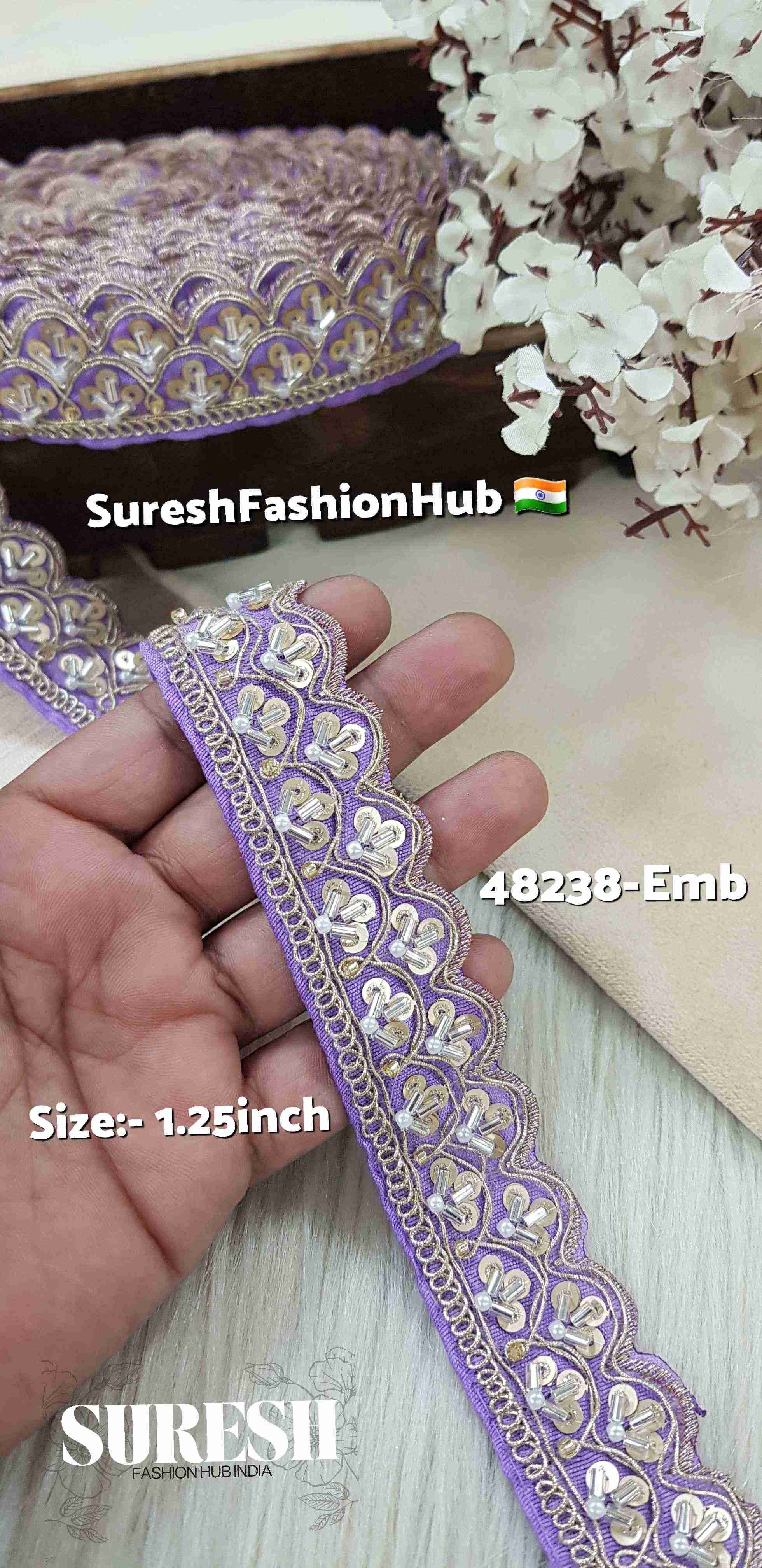 Introducing the *Pearl Scalloped Kaddhana Lace, a stunning machine-made lace featuring a delicate **one-sided scallop design. Crafted on **16 different fabric colors, this lace brings an exquisite charm with its **sequins, pearls, kaddhana, and pearl dori embellishments*.