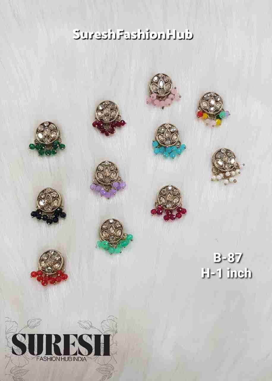The surface is beautifully embellished with *kundan and round stones, creating a rich and elegant focal point. To elevate its look further, we have added **hanging colored crystal drops*, giving it graceful movement and a subtle sparkle effect.