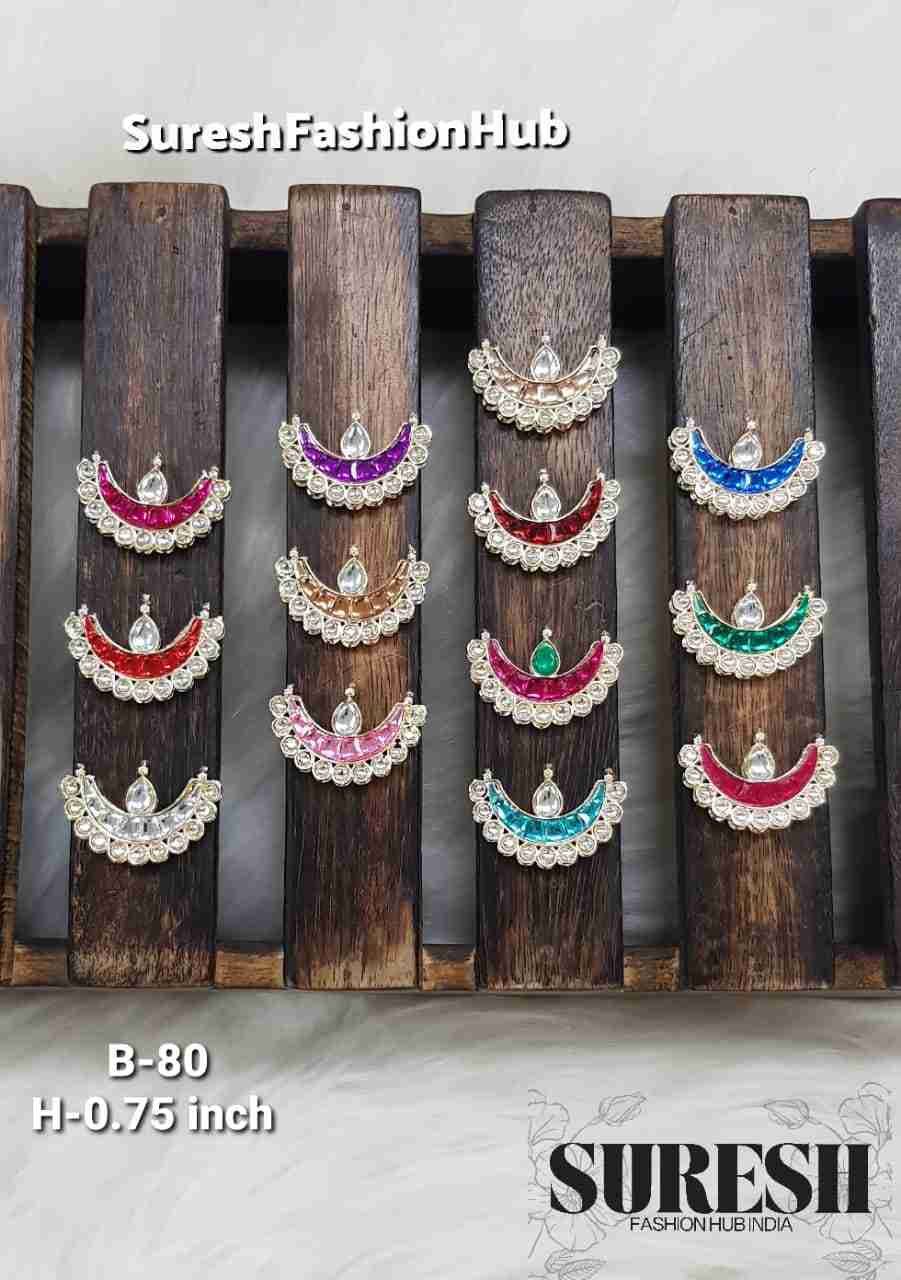 The surface is beautifully decorated with intricate *meenakari work, kundan setting, and round stones*, creating a rich and colorful appearance. Despite its smaller 0.75-inch size, the detailing ensures a noticeable and sophisticated finish.