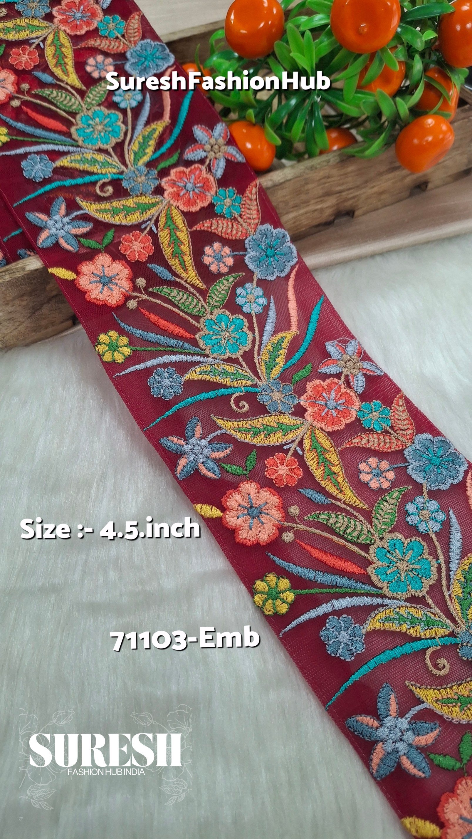 Introducing our *Exquisite Multi-Color Embroidery Net Border*, a premium 4.5-inch design crafted to perfection for designer and boutique wear.