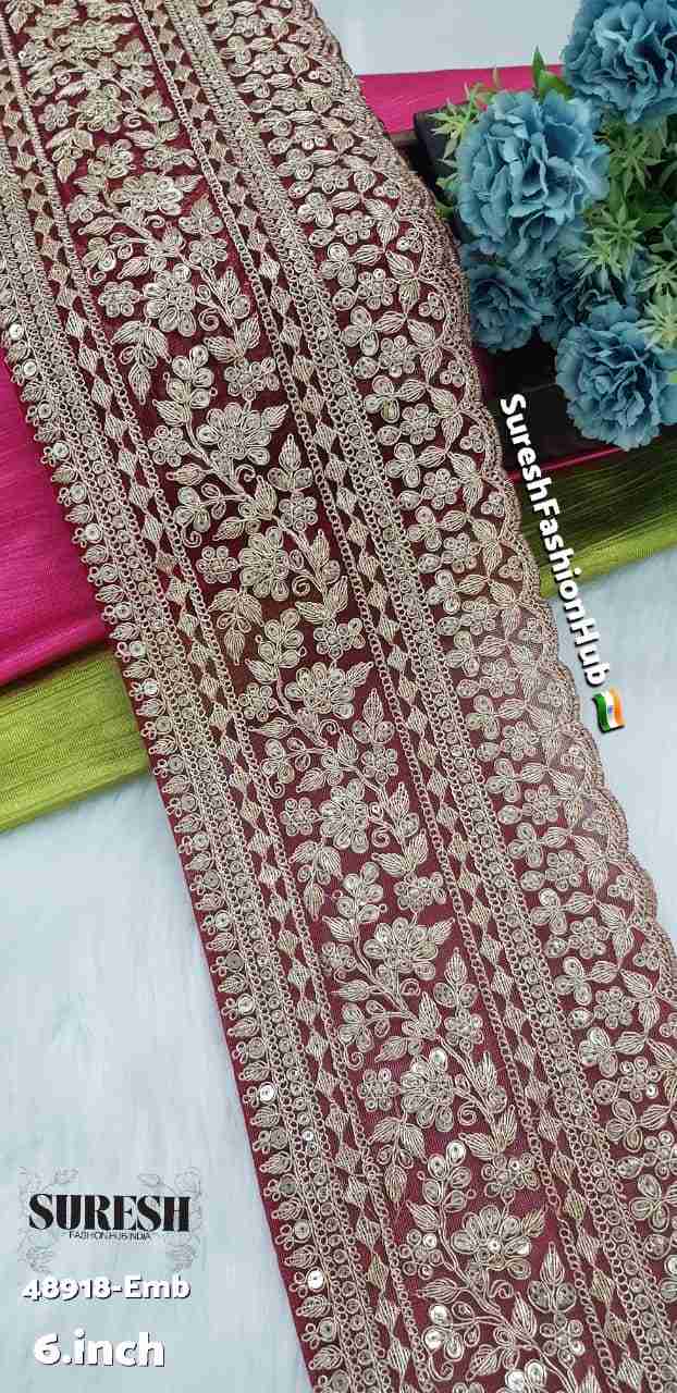 Presenting our *Royal Floral Dori & Sequin Embroidery Lace, a premium machine-made embroidery design crafted on fine net with elegant detailing and rich finishing. This exclusive lace is **manufactured and sold by Suresh Fashion Hub India*, a trusted manufacturer and wholesaler of embroidery laces, handmade neck designs, borders, trims, and ethnic embellishments, known for quality craftsmanship and consistent finishing.