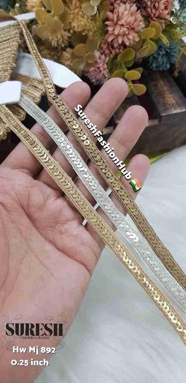 *Mj-892* is a *delicate yet luxurious handcrafted border* that blends *precision, elegance, and metallic charm, making it a perfect choice for **premium couture, bridal detailing, and refined festive fashion* ✨