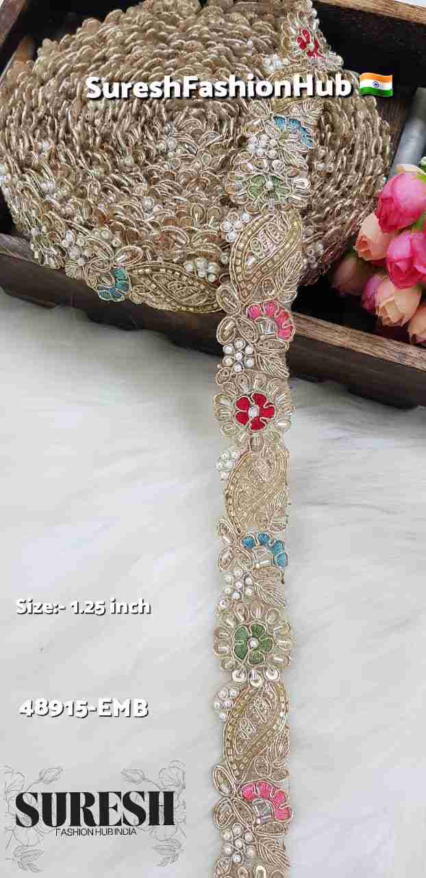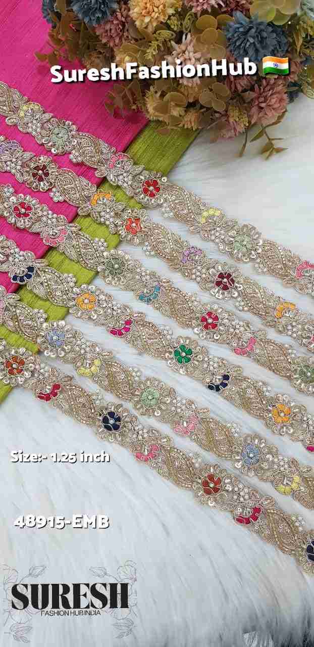 Introducing our *Floral Multi-Color Cutwork Organza Lace, a premium designer border inspired by high-fashion couture styling. Crafted using a refined **machine-hand technique*, this lace combines precision with rich hand-style detailing.