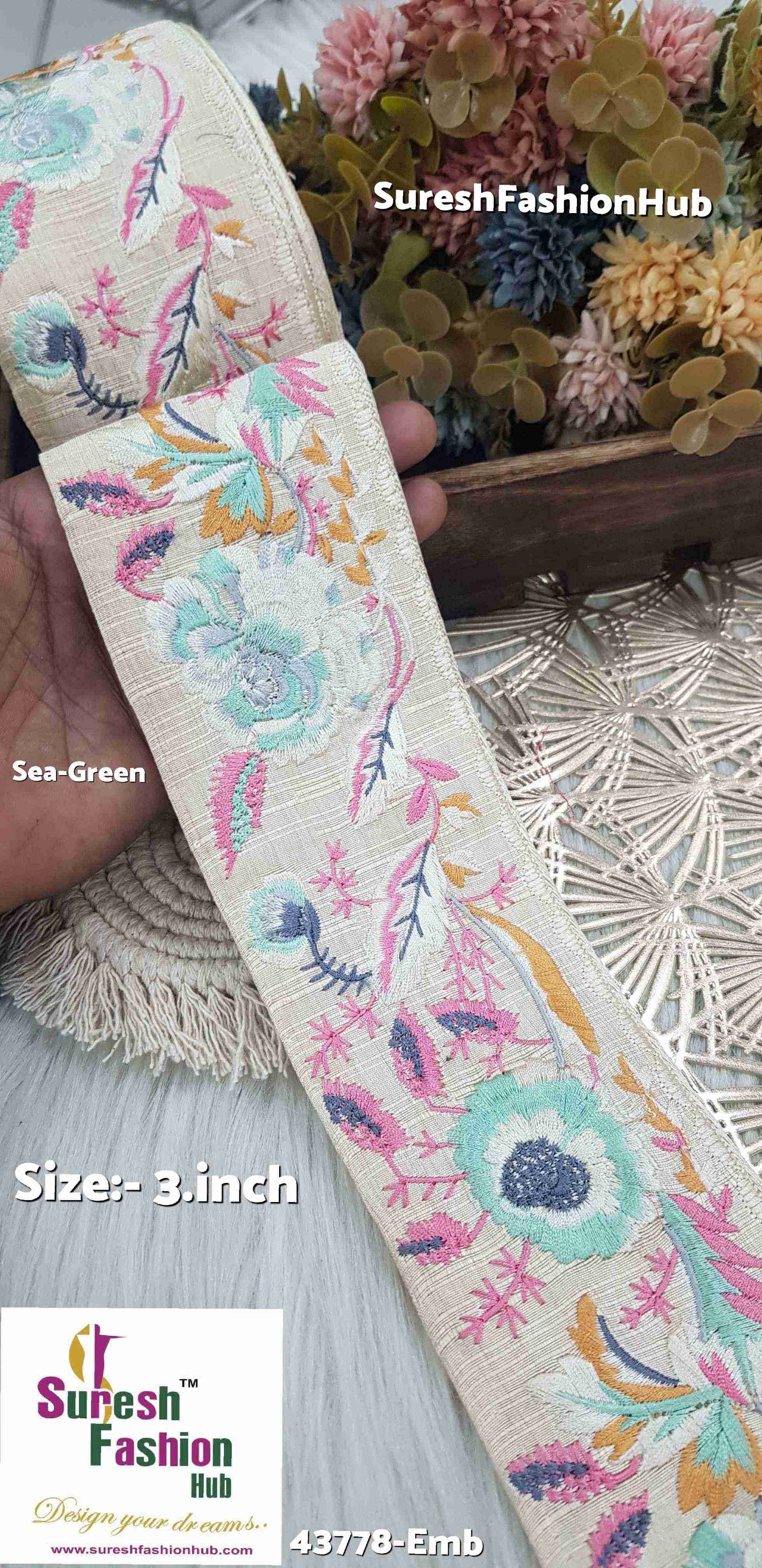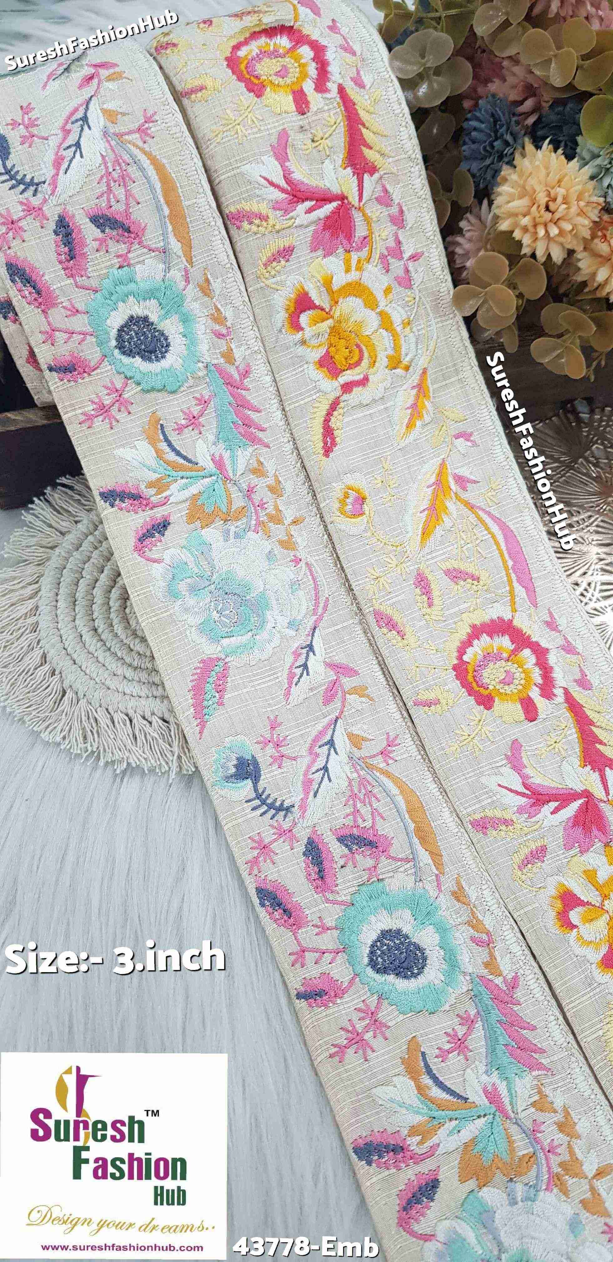 Elevate your designs with the enchanting beauty of our Multicolor Floral Embroidered Lace - a captivating fusion of vibrant hues and intricate craftsmanship. This exquisite lace features a delightful array of multicolored floral motifs, meticulously embroidered to perfection. Available in two enchanting colors, each lace boasts a mesmerizing palette that adds a touch of elegance to any creation. With a generous size of 3 inches, indulge in the versatility and charm of this exquisite lace, priced to enhance your creative endeavors.