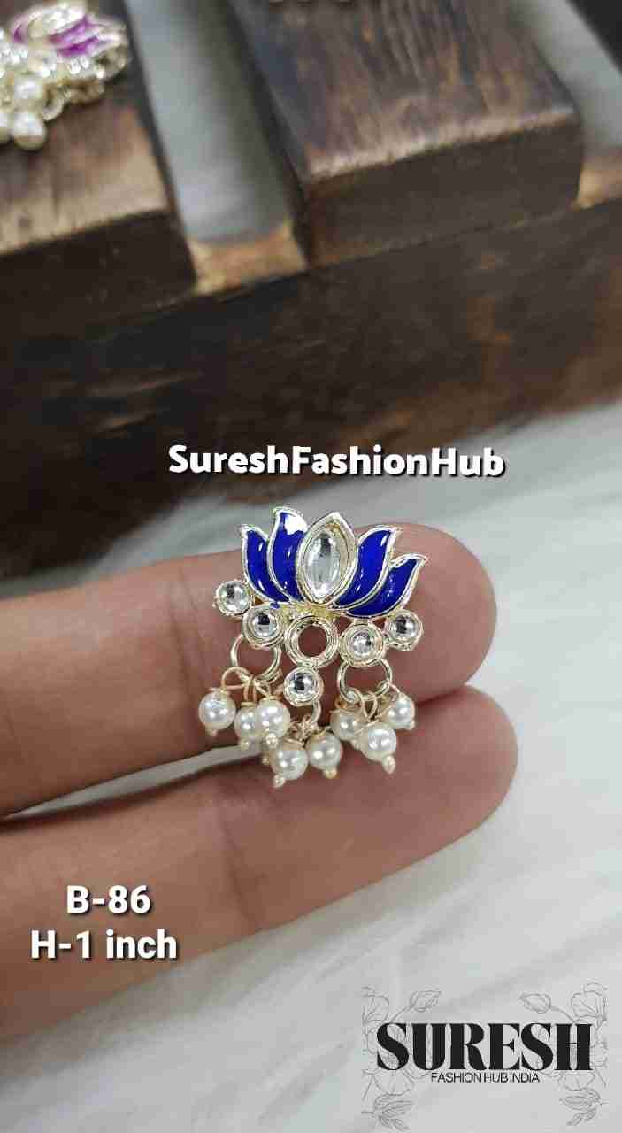 Home / Products / Navy Lotus Meenakari Pearl Drop Button – B-86
