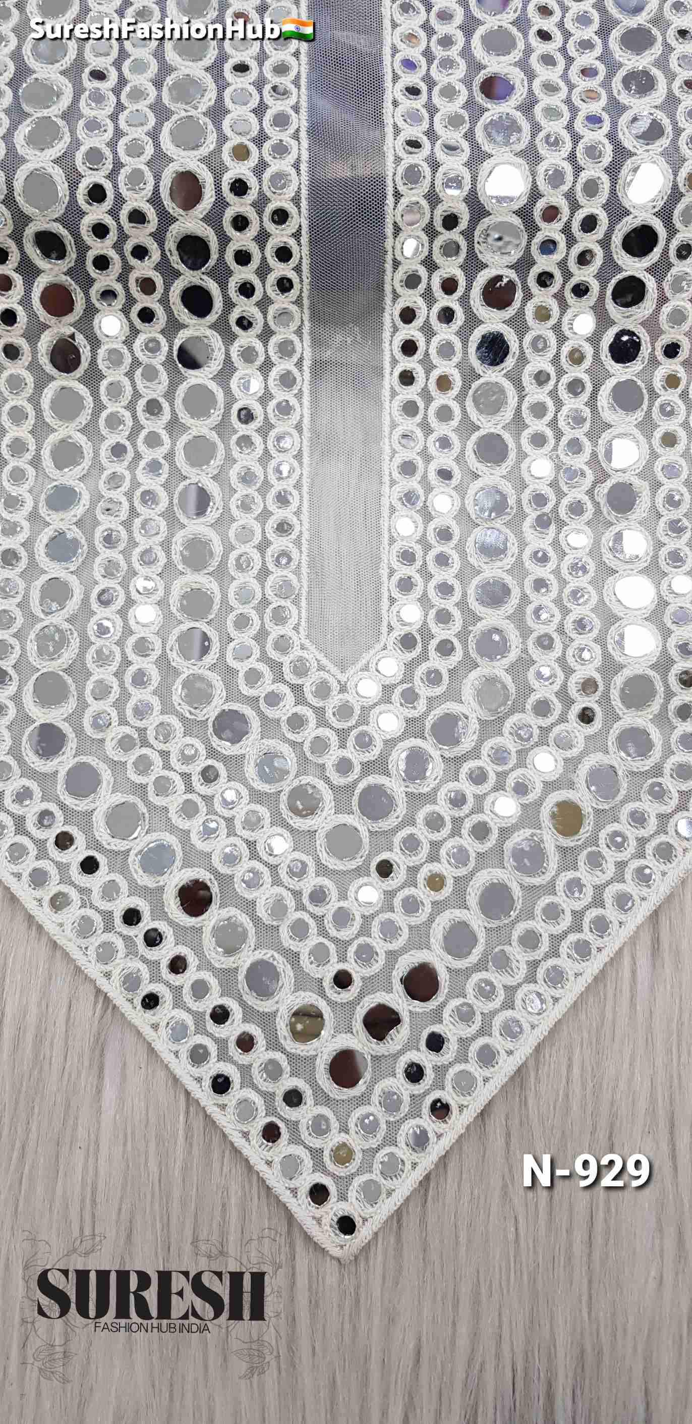 Geometric mirror neck design, N-929 embroidery neck, round mirror neck patch, off white mirror neckline, black mirror embroidery neck, rose mirror neck design, pearl mirror neck India.
