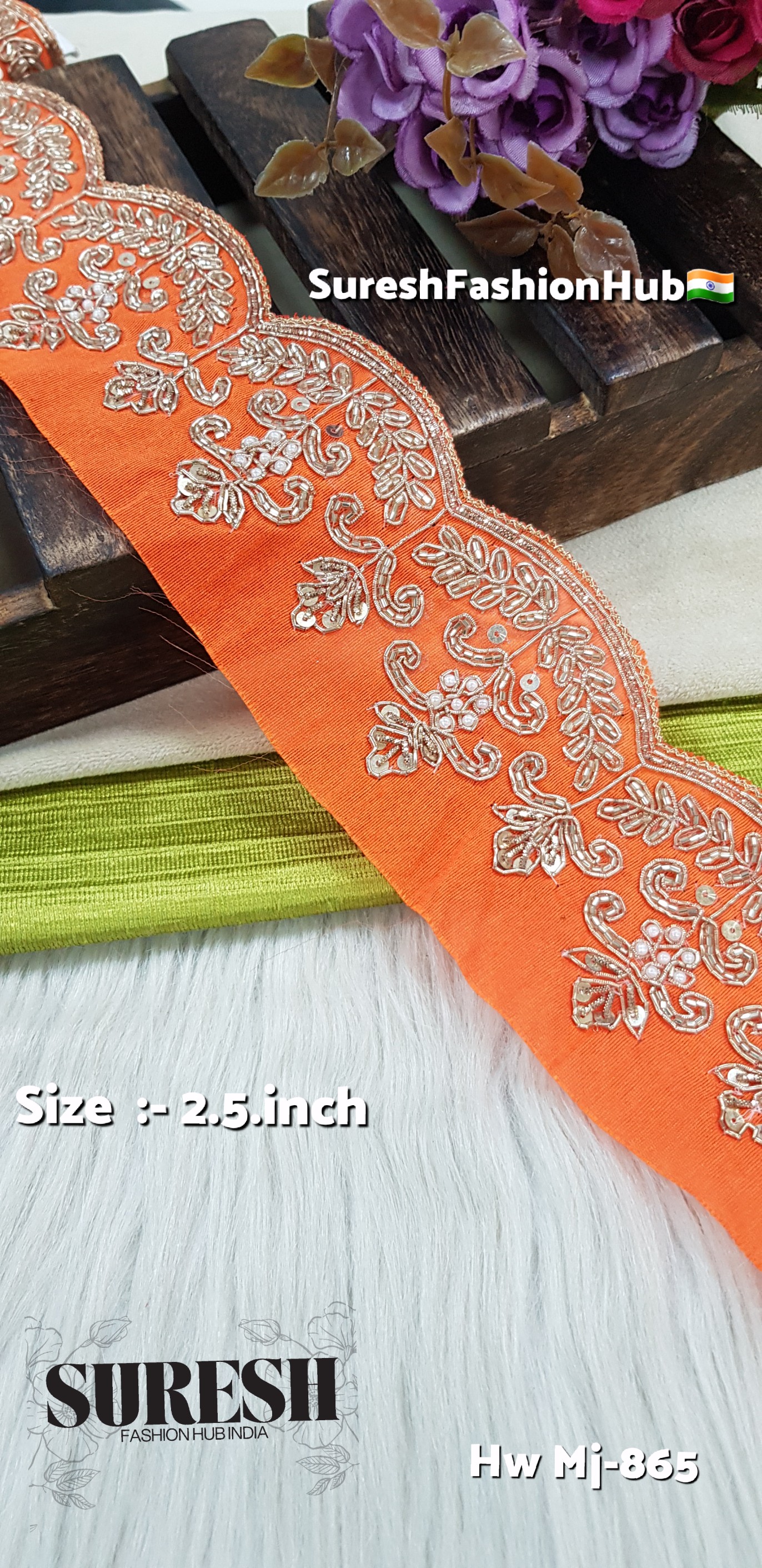 This beautiful handmade border features a *one-side scalloped finish* and a *unique floral pattern* created by our highly skilled artisans. The design delivers richness, depth, and luxury—perfect for premium bridal and couture wear.