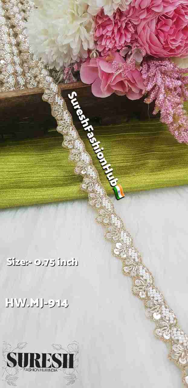 Introducing our *Double Scalloped Moti Zardosi Handwork Lace, a beautifully handcrafted border designed to deliver a balanced and luxurious finish from both sides. This lace is completely **handmade*, reflecting fine craftsmanship with intricate detailing.