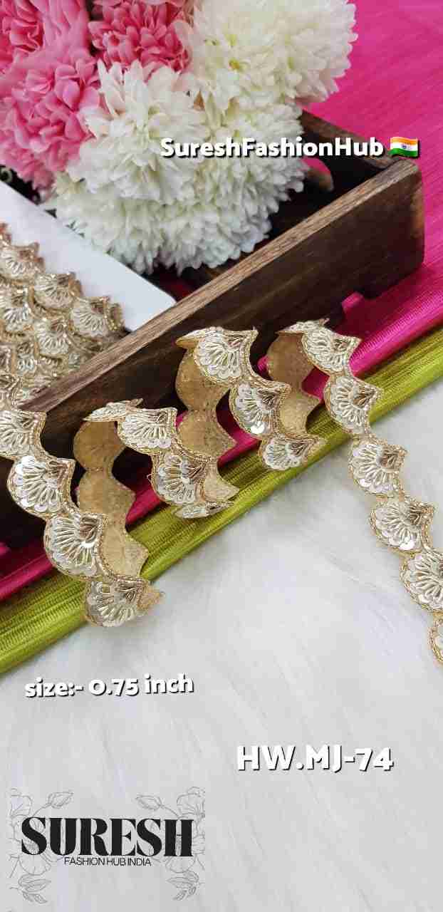 Introducing our Double Scalloped Zardosi Handwork Lace, a premium handcrafted border designed for a perfectly balanced and luxurious finish on both sides. This lace is completely handmade, reflecting fine craftsmanship and attention to detail.