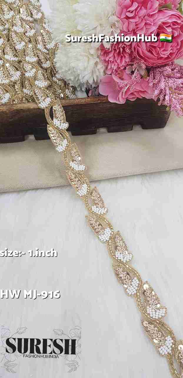 Crafted with intricate detailing using *saadi, pearls (moti), cutdana, and sequins, the lace delivers a rich combination of texture, shine, and depth. The blend of **pearl work with cutdana highlights* enhances its brilliance, making it stand out beautifully on any garment.