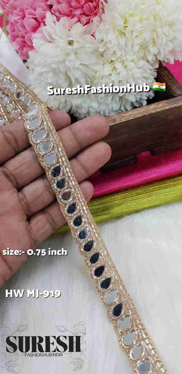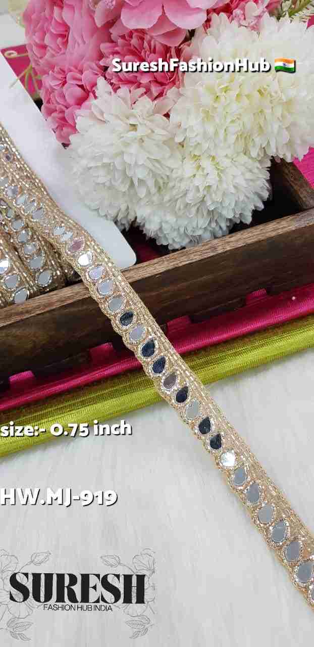 Crafted using *nakshi, cutdana, and mirrors, this lace delivers a stunning play of shine and reflection. The **mirror elements add a festive sparkle*, while the cutdana enhances brilliance and depth, making the lace stand out beautifully.