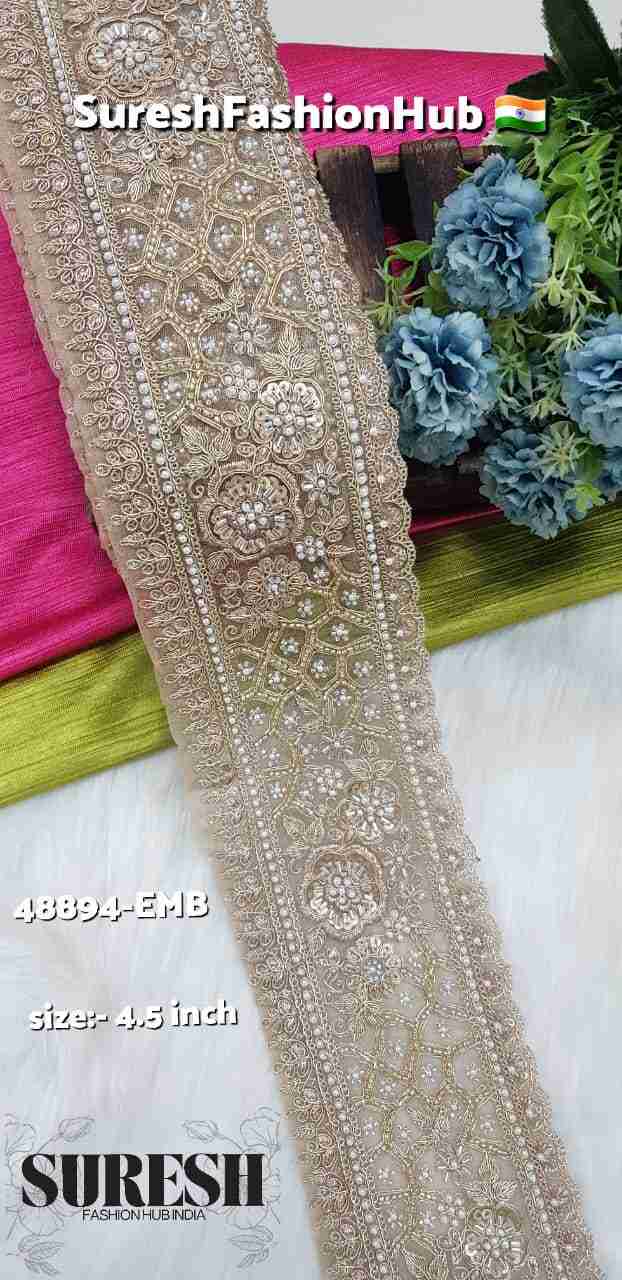Presenting our *Royal Floral Handmade-Style Embroidery Lace, a premium design that beautifully blends the richness of handwork aesthetics with the precision of machine preparation. This exclusive lace is **manufactured and sold by Suresh Fashion Hub India*, a trusted manufacturer and wholesaler of embroidery laces, handmade neck designs, borders, trims, and ethnic embellishments, known for refined craftsmanship, premium materials, and consistent finishing.