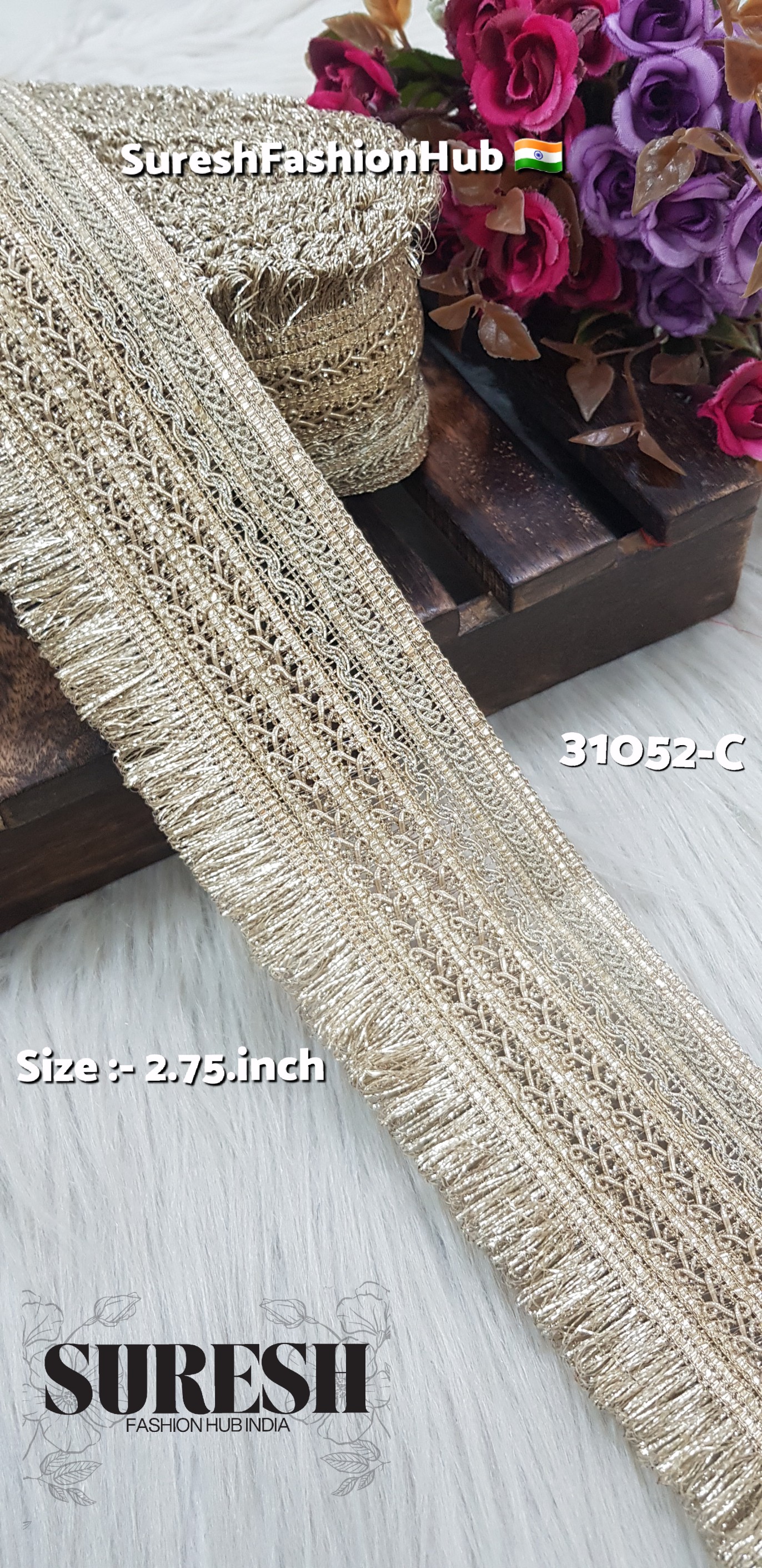 The *31052-C Jhalar Border* is a beautifully crafted machine-made fringe design created using elegant *pearl-style elements*. It is a one-side jhalar border, giving a graceful fall and a premium designer finish. The soft pearl-inspired look enhances sarees, lehengas, blouses, dupattas, and décor pieces effortlessly.