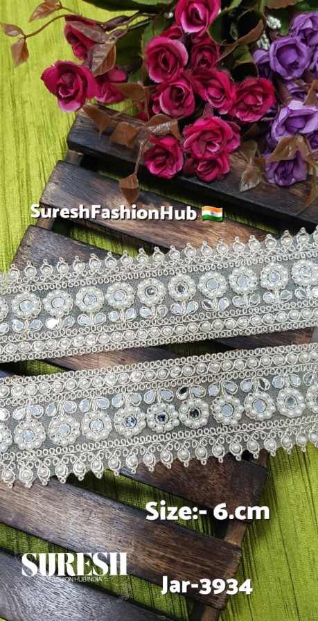 Pearl lace border, mirror moti lace, Jar-3934 lace, dori sequence lace India, designer mirror lace, pearl embroidery lace, premium ethnic lace.