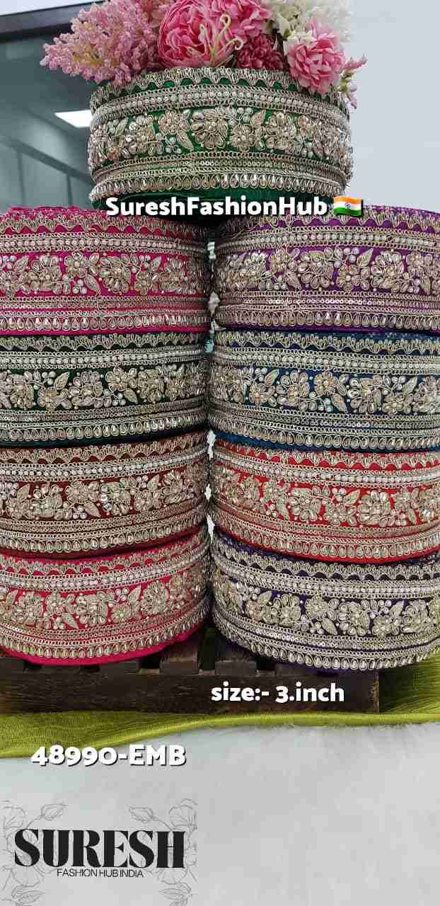 Maggam work lace, cutdhana embroidery lace, designer floral border, machine maggam lace India, heavy embroidery lace, bridal lace trim, couture ethnic lace