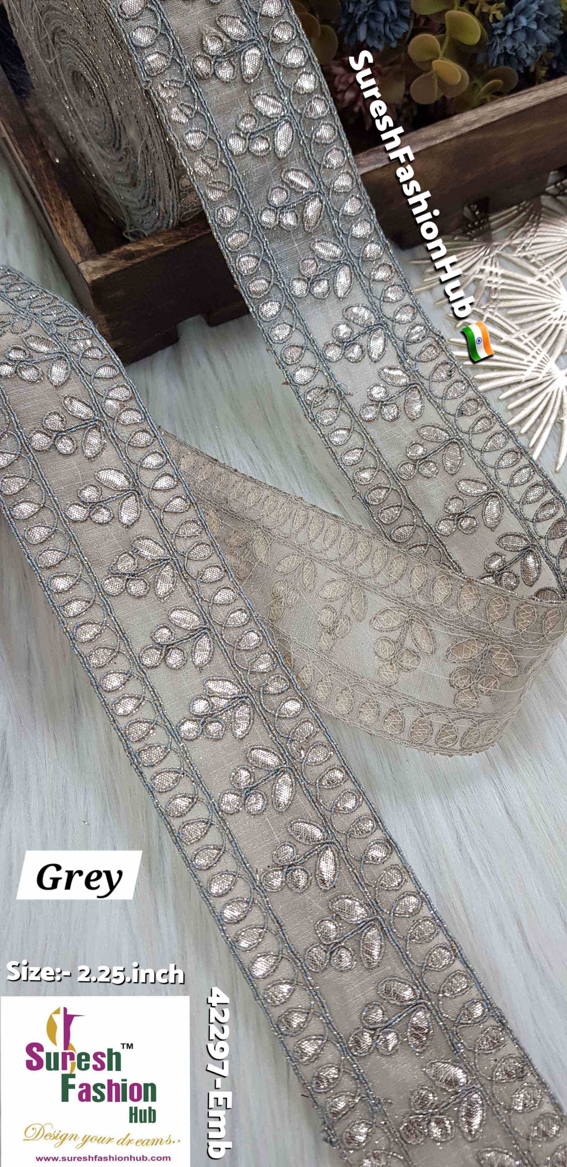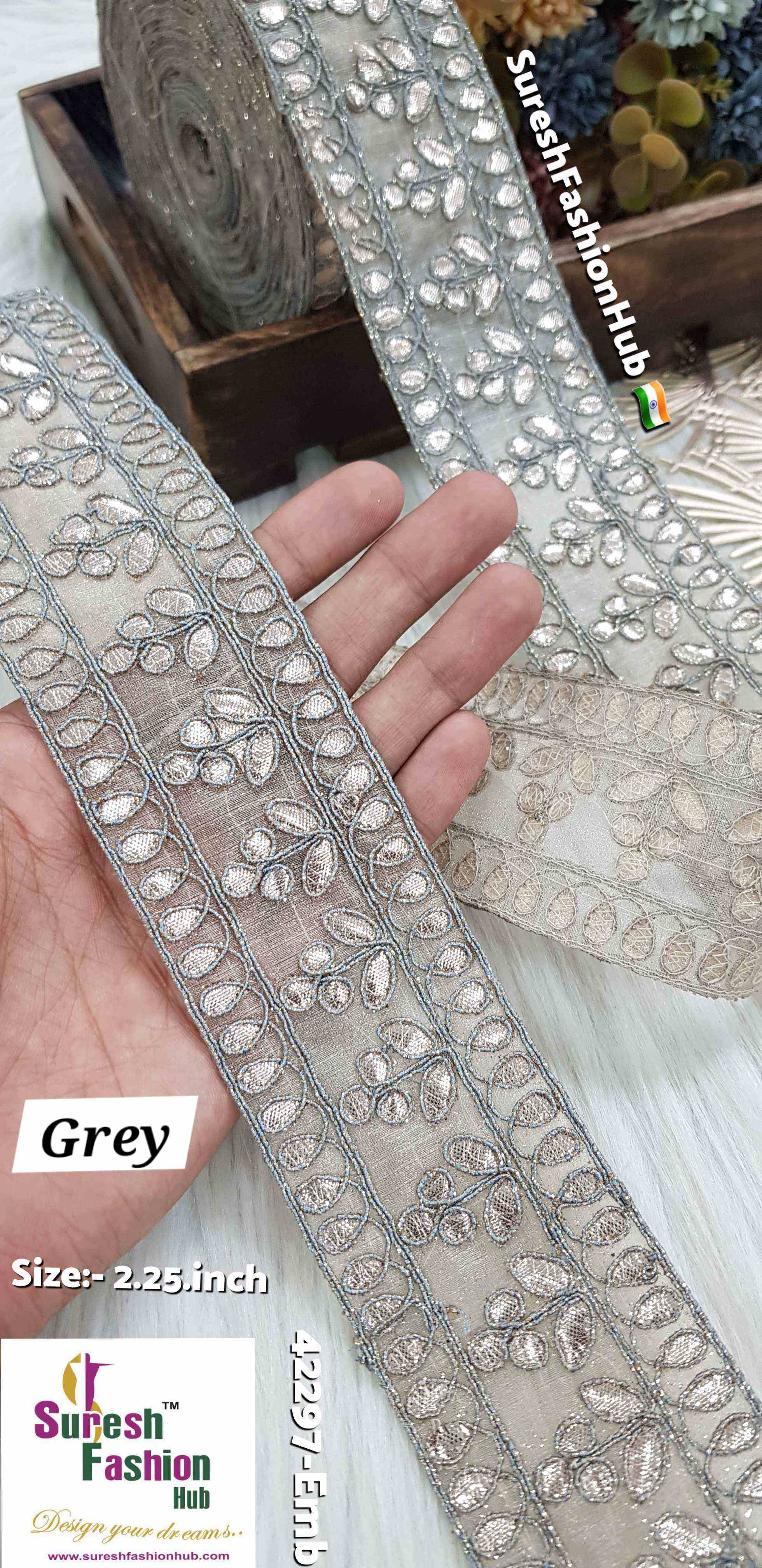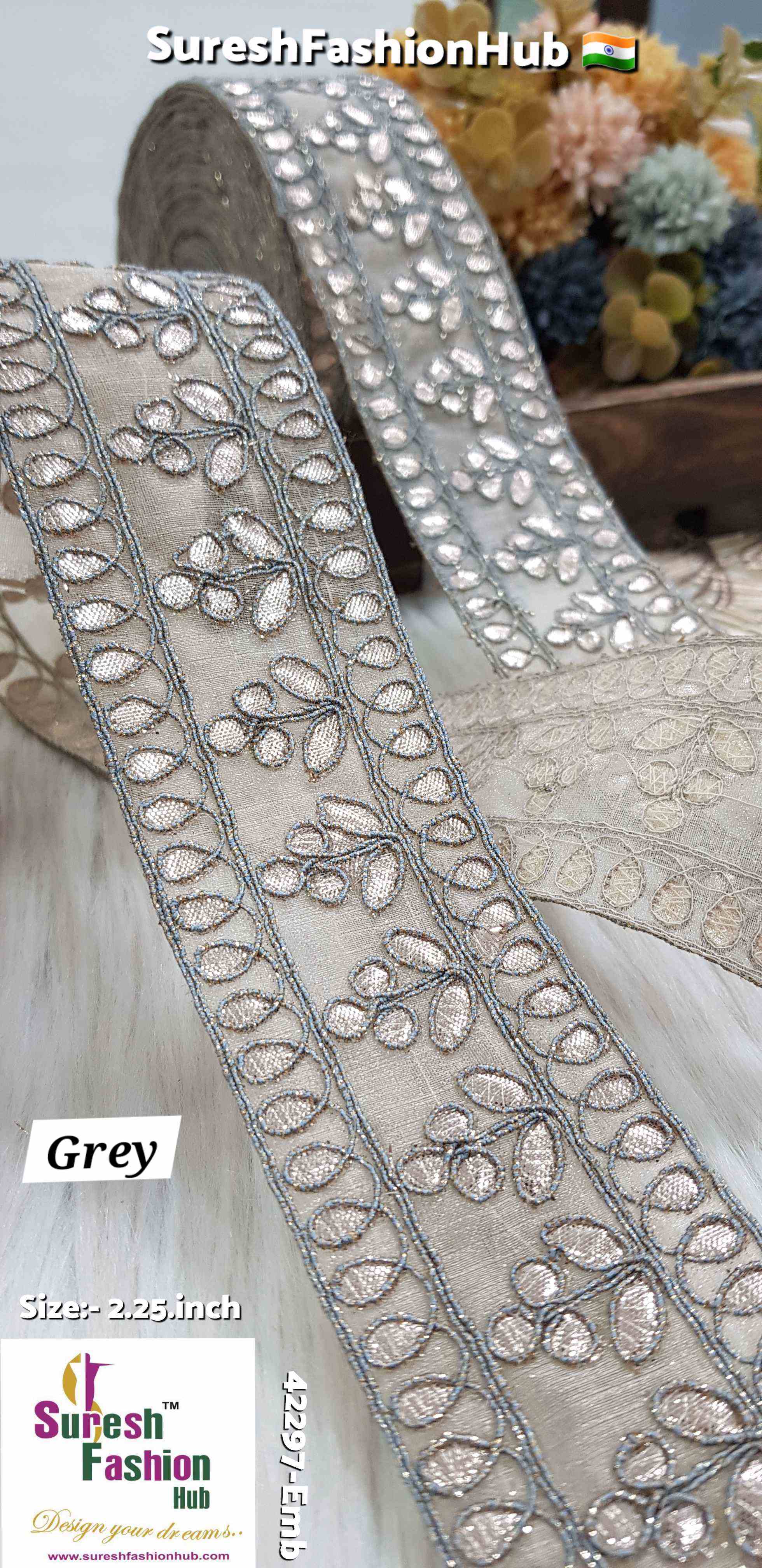 Indulge in the exquisite charm of our Cute Petal Laser Gota Lace, priced at Rs 750 for 9 meters. This intricate lace is crafted with precision using a Gota Laser Cut Machine, where delicate gota is meticulously affixed onto organza fabric. Adorned with colorful jari cord, this 2-inch design features a delightful floral pattern that exudes elegance and sophistication. Elevate your creations with the extraordinary beauty of our Cute Petal Laser Gota Lace.