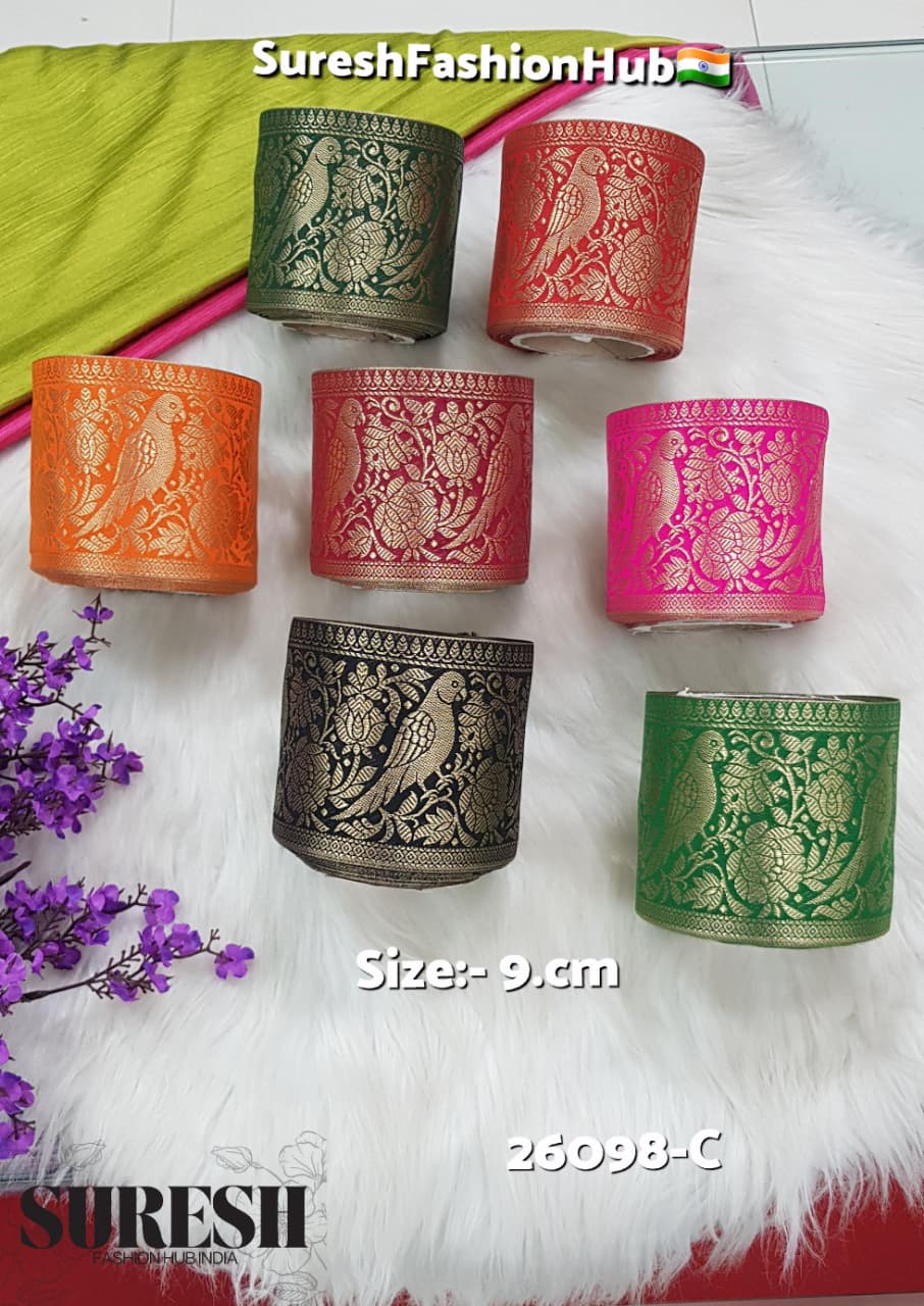 Enhanced with a *Banarasi-style golden touch, this lace delivers a rich, festive, and elegant appearance. With its **9 cm broad width*, it offers strong visibility, making it perfect for statement borders and designer outfits.